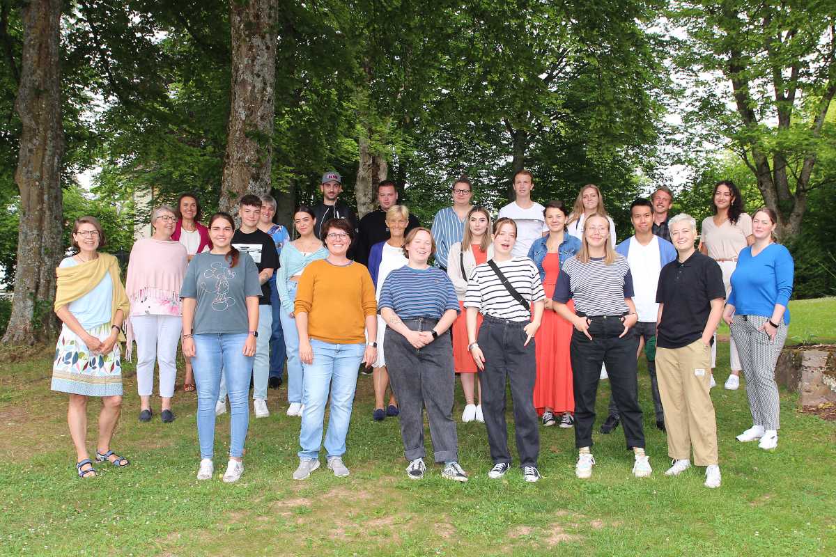 Herzlichen Glückwunsch: Nach ihrem Anerkennungsjahr und bestandenem Kolloquium haben 21 Absolvent*innen der Fachschule für Sozialwesen der Zinzendorfschulen die staatliche Anerkennung als Jugend- und Heimerzieher erworben. Die Leiterin der Abteilung Sozialpädagogik der Zinzendorfschulen, Maria-Elke Schoo-Schemmann (vorne links) und die Fachlehrer freuen sich mit Siradanai Bunprasert, Elena Danelutti, Ramona Filser, Ulrike Flaig, Fabienne Gieracz, Elias Haag, Sabrina Hahn, Julian Hogg, Tabea Kaminski, Kevin Keßel, Katharina King, Melisa Koyun, Luzia Kronbach, Rebecca Lange, Inka Lobenstein, Bastian Lugbauer, Dilara Oktar, Florian Sichler, Saskia Trubarac, Naomi Wetzel, Fenja Wippler.