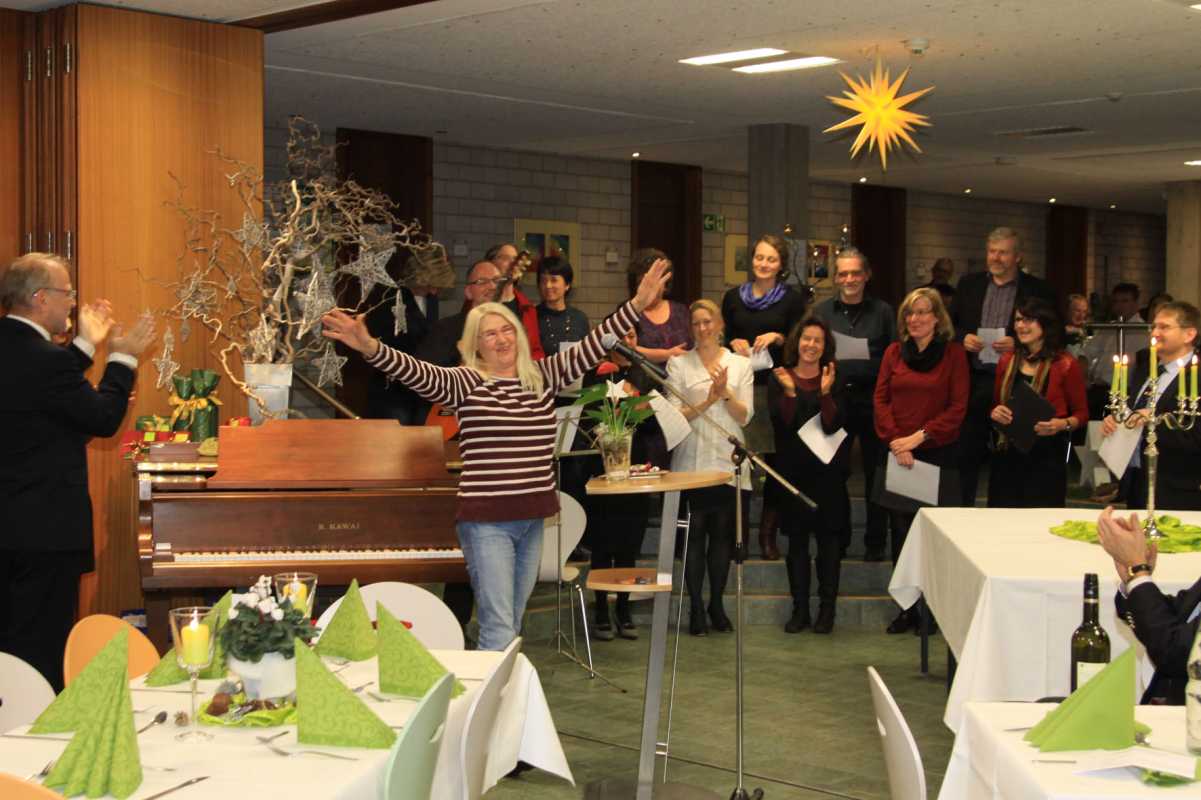 Manchmal könnten sich Eltern beim Gang durch das Amos-Comenius-Haus der Zinzendorfschulen wie in einer Zeitschleife fühlen. Die zierliche Gestalt mit dem fröhlichen Lachen und schier unbändiger Energie – die kennen sie doch irgendwoher? Nach einigem Grübeln wird ihnen klar: Das ist Lubi, die sorgte doch schon zu ihrer eigenen Schulzeit dafür, dass alles blitzblank ist. Tatsächlich arbeitet Ljubica Trajkovic seit 1974 im Bereich Hauswirtschaft des Königsfelder Schulwerks, weshalb der Wirtschaftsleiter der Zinzendorfschulen, Br. Schaible, sich bei der Weihnachtsfeier für 40 Jahre treue Dienste bei ihr bedankte. Und nicht nur er: Alle Mitarbeiter und ihre Familien erhoben sich von ihren Plätzen und spendeten „Lubi“ gebührenden Applaus.„Zusammen kommen ist ein Beginn, zusammen bleiben ist ein Fortschritt und zusammen arbeiten ist ein Erfolg“, zitierte Br. Schaible Henry Ford. Diesen Erfolg konnten noch mehrere Jubilare verzeichnen: Die Hauswirtschaftsleiterin vom Jungeninternat Haus Früauf, Marta Riesterer, ist mit 35 Jahren fast ebenso lang im Team und Irene Fangrat arbeitet seit immerhin schon zehn Jahren im Bereich Hauswirtschaft.