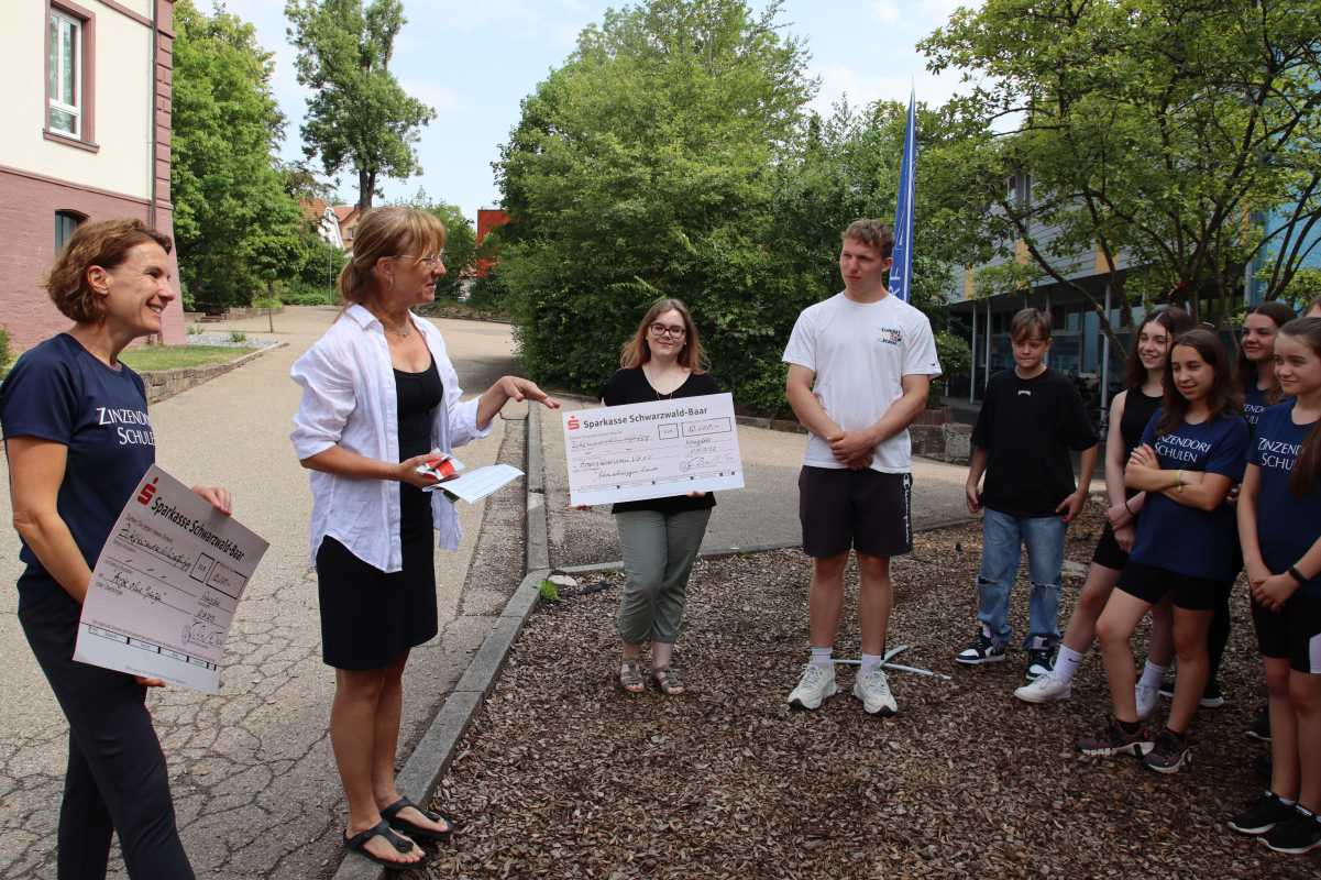 25.300 Euro – das ist die sagenhafte Summe, welche die Zinzendorfschulen bei ihrem Sponsorenlauf Ende März sammeln konnten. Jetzt wurde die Spende an die beiden Empfänger überreicht, für die sich die SMV entschieden hatte. Je zur Hälfte ging das Geld an die Organisation Ärzte ohne Grenzen und den Wohnbereich Sternschnuppenbande des Hospiz Fördervereins VS. Aus Schwenningen war Sandra Mieg gekommen, um den symbolischen Scheck entgegenzunehmen und den Schülerinnen und Schülern zu erzählen, wofür die Spende eingesetzt wird. Die 12.650 Euro sollen zum geplanten Spielplatz der Wohngruppe beitragen, in der acht körper- und mehrfachbehinderte Kinder und Jugendliche im Alter zwischen sechs und 27 Jahren leben. Der behindertengerechte Spielplatz soll auch Nachbarskindern ohne Handicap zur Verfügung stehen.