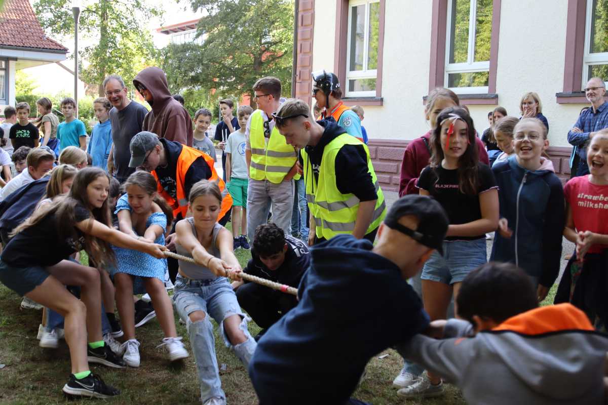Die jüngeren Schüler*innen wurden mit Tauziehen und Fußballspielen bei Laune gehalten, zum Schluss gab es noch eine große Tombola, für die die Lose in den vergangenen Tagen verkauft worden waren. Ein DJ beschallte den ganzen Spaß, der von einem ziemlichen Chaos aus Altpapier begleitet war, welches die Abiturienten aber am Schluss gewissenhaft beseitigten.