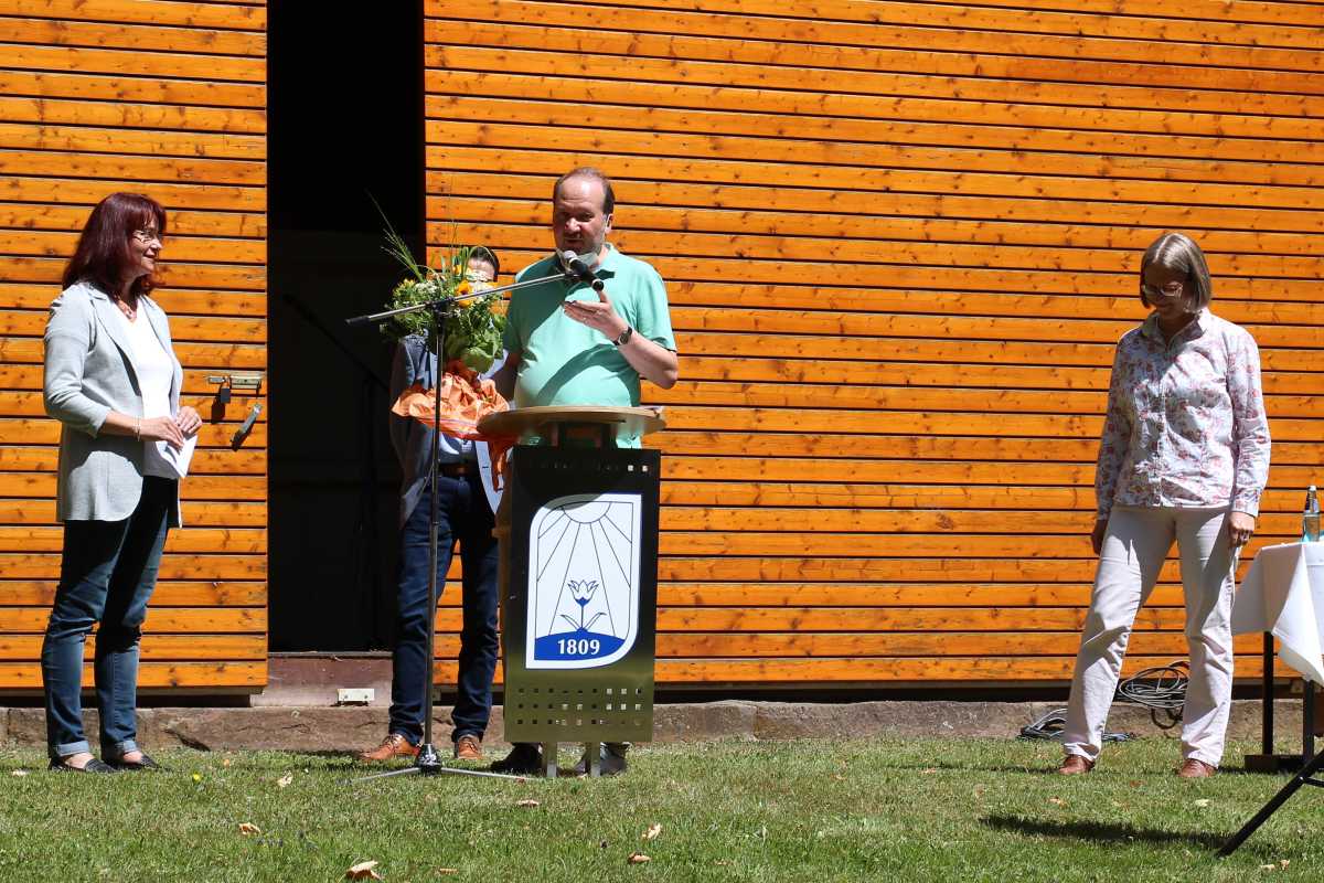 Bei schönstem Wetter, einzeln verpackten Laugenstangen und großzügigem Abstand auf und zwischen den Bänken wurden die teils langjährigen Mitarbeitenden von Schul- und Verwaltungsleitung sowie Kolleginnen und Kollegen verabschiedet.