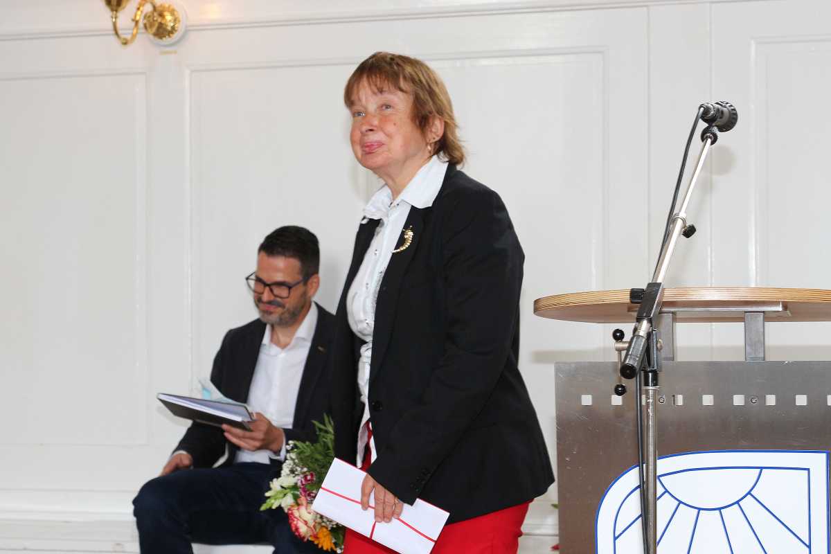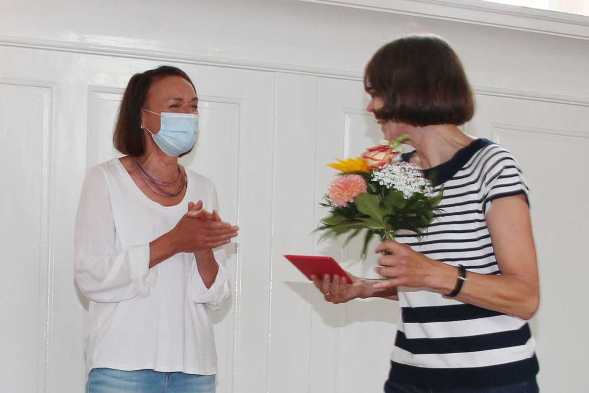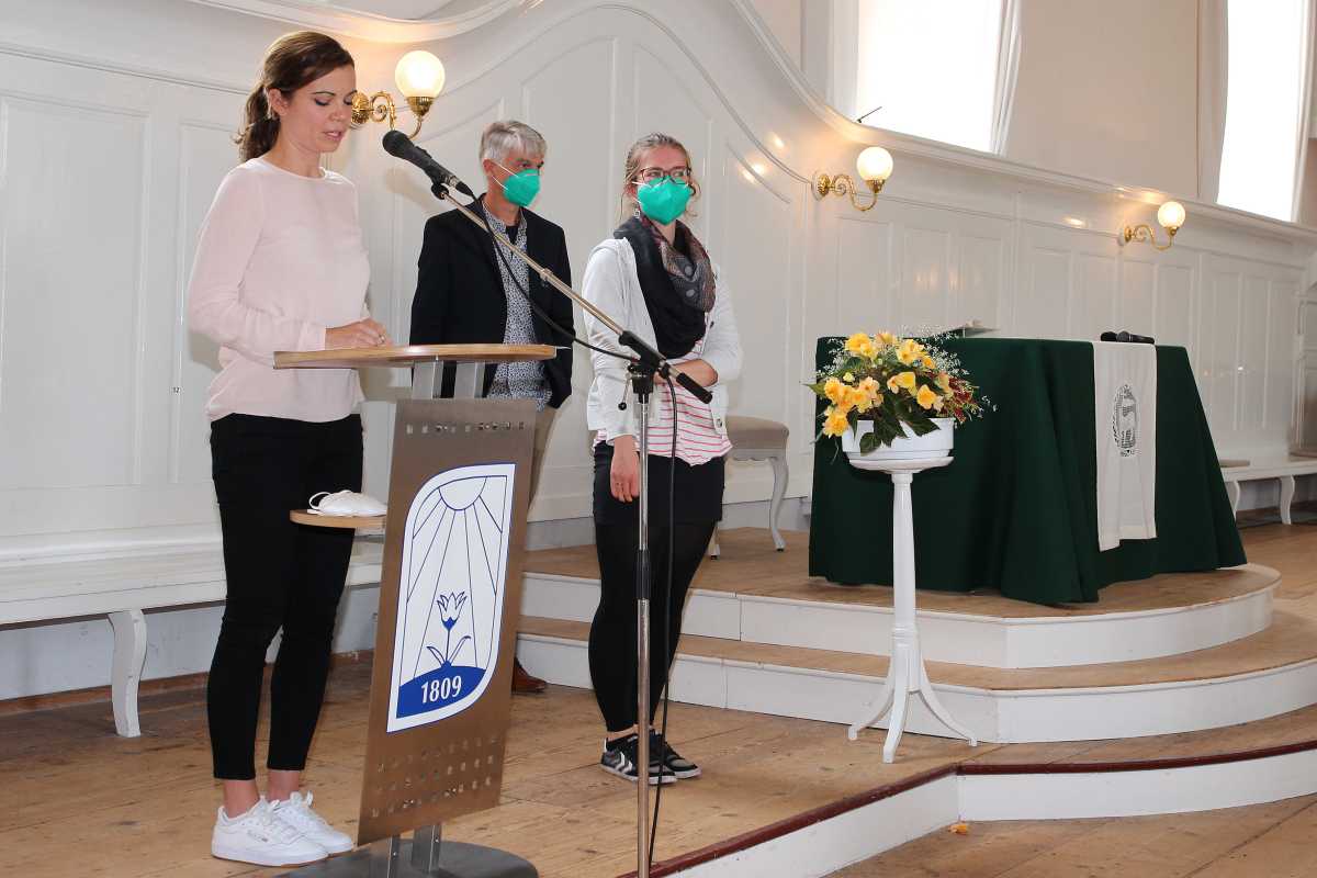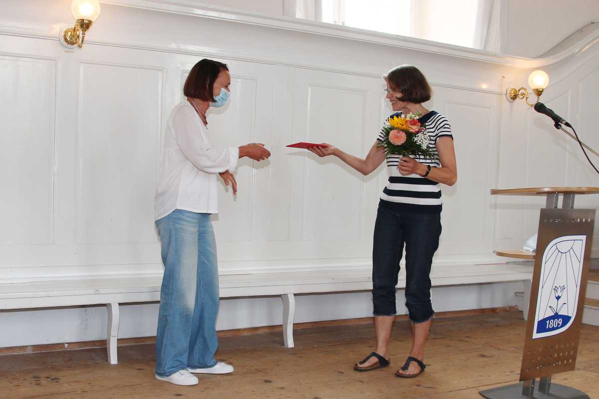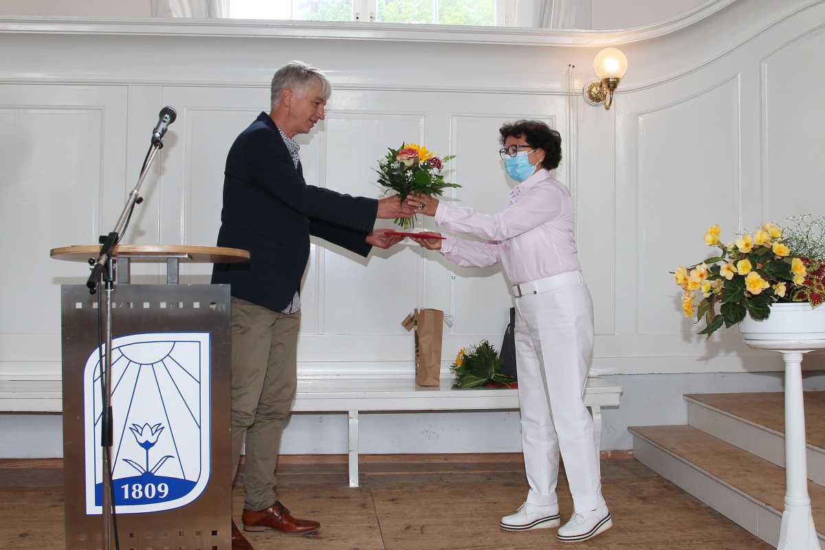 Nachdem Sr. Carstens von der Direktion der Brüder-Unität den Mitarbeitenden aller Bereiche des umfangreichen Schulwerks umfassend für ihren Einsatz gewürdigt hatte, nahmen die Mitglieder der Schul- und Verwaltungsleitung sowie Kolleginnen und Kollegen Abschied von Menschen, die zum Teil seit Jahrzehnten mit ihnen den beruflichen Alltag teilten. Der stellvertretende Schulleiter Br. Hertnagel dankte auch der ehemaligen Schulleiterin Beate Biederbeck – unter anderem dafür, dass sie ein Qualitätsmanagement in die Wege geleitet hat, an dem ein engagiertes Team trotz Corona weiterarbeitet.