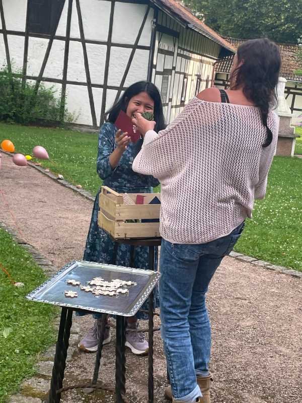 Musikalisch wurde die Feier von Jiawei und Br. Busch an ihren Gitarren untermalt. Auch die kulinarischen Highlights konnten sich sehen lassen: Frisch vom Grill kamen Fleisch und vegetarische Gerichte, dazu Salate und verschiedene Dips. Alle genossen das köstliche Essen und die gesellige Atmosphäre.