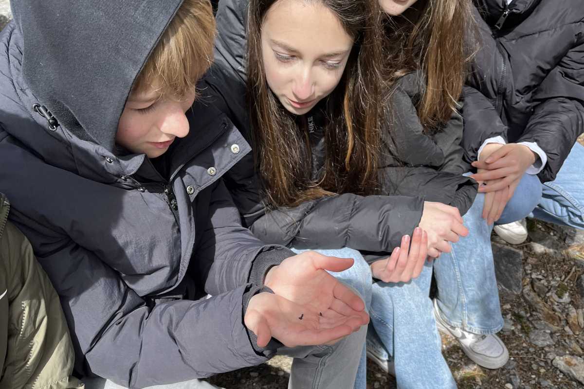 Zwei Rancherinnen nahm die Schülerinnen und Schüler mit auf einen Streifzug durch ein Naturschutzgebiet, wo sie viele Informationen über die Natur mit ihren Pflanzen und Tieren bekamen. Die Realschüler*innen lernten interessante Fakten über den Schweizer Löwenzahn, das Auerhuhn, den Borkenkäfer und vieles mehr.