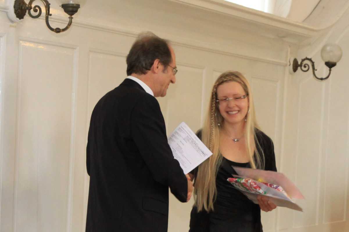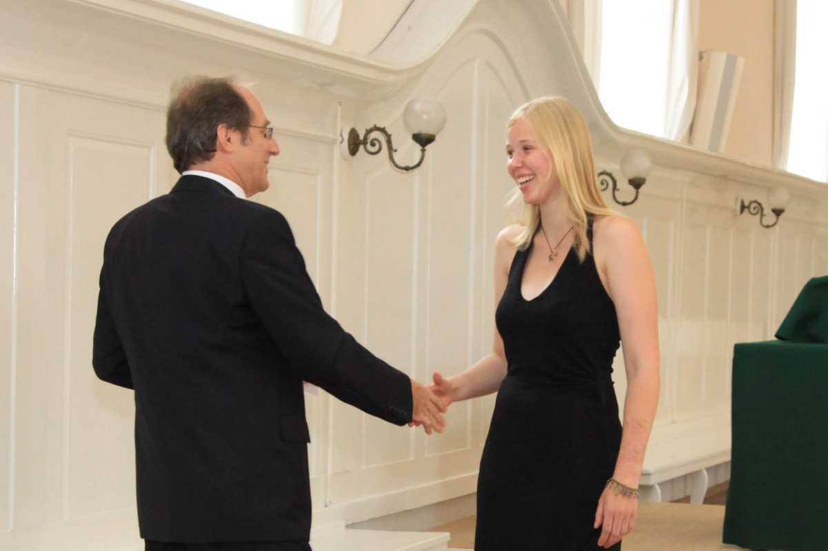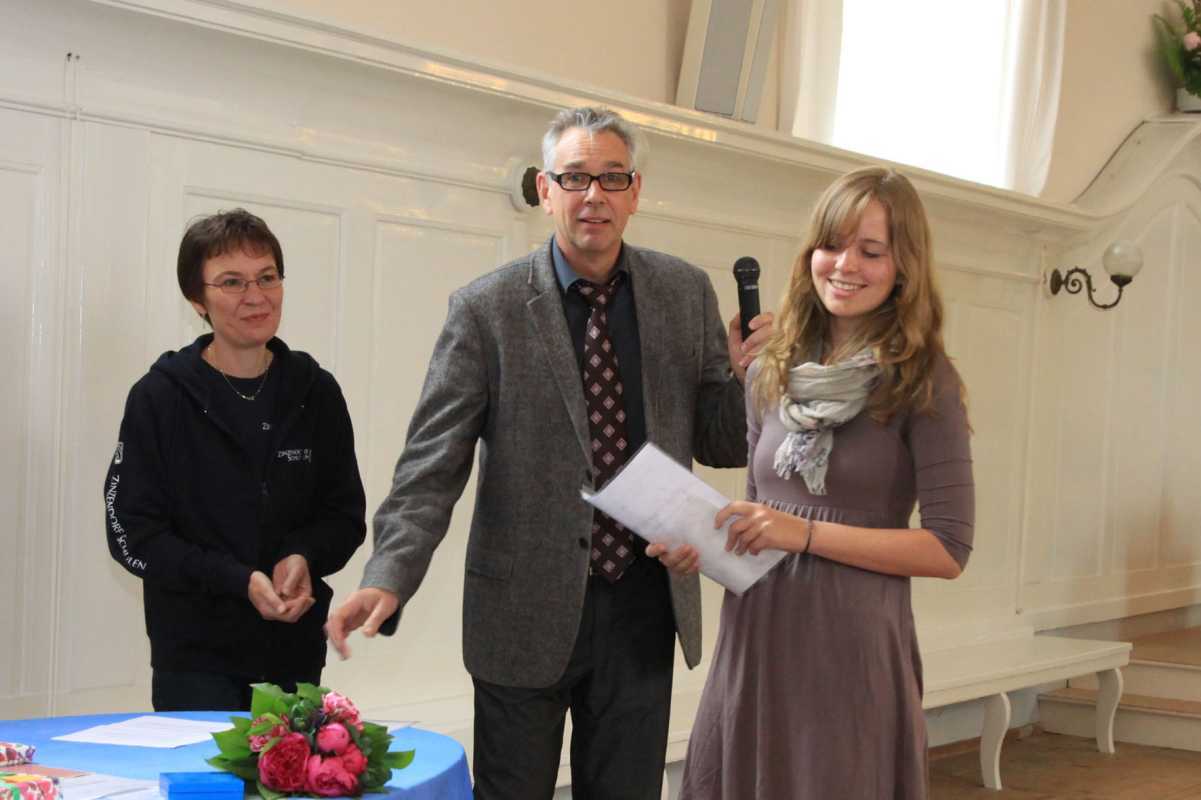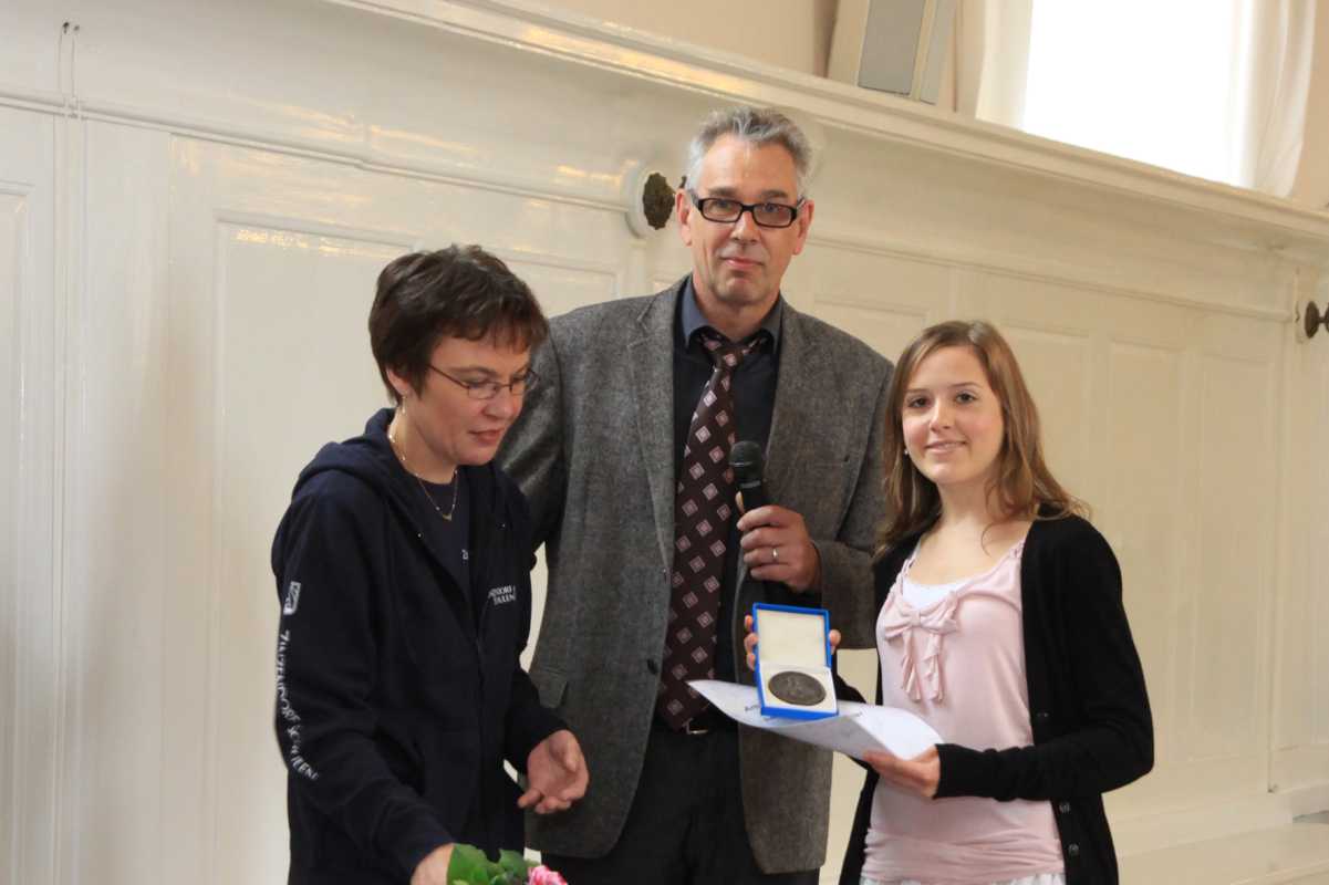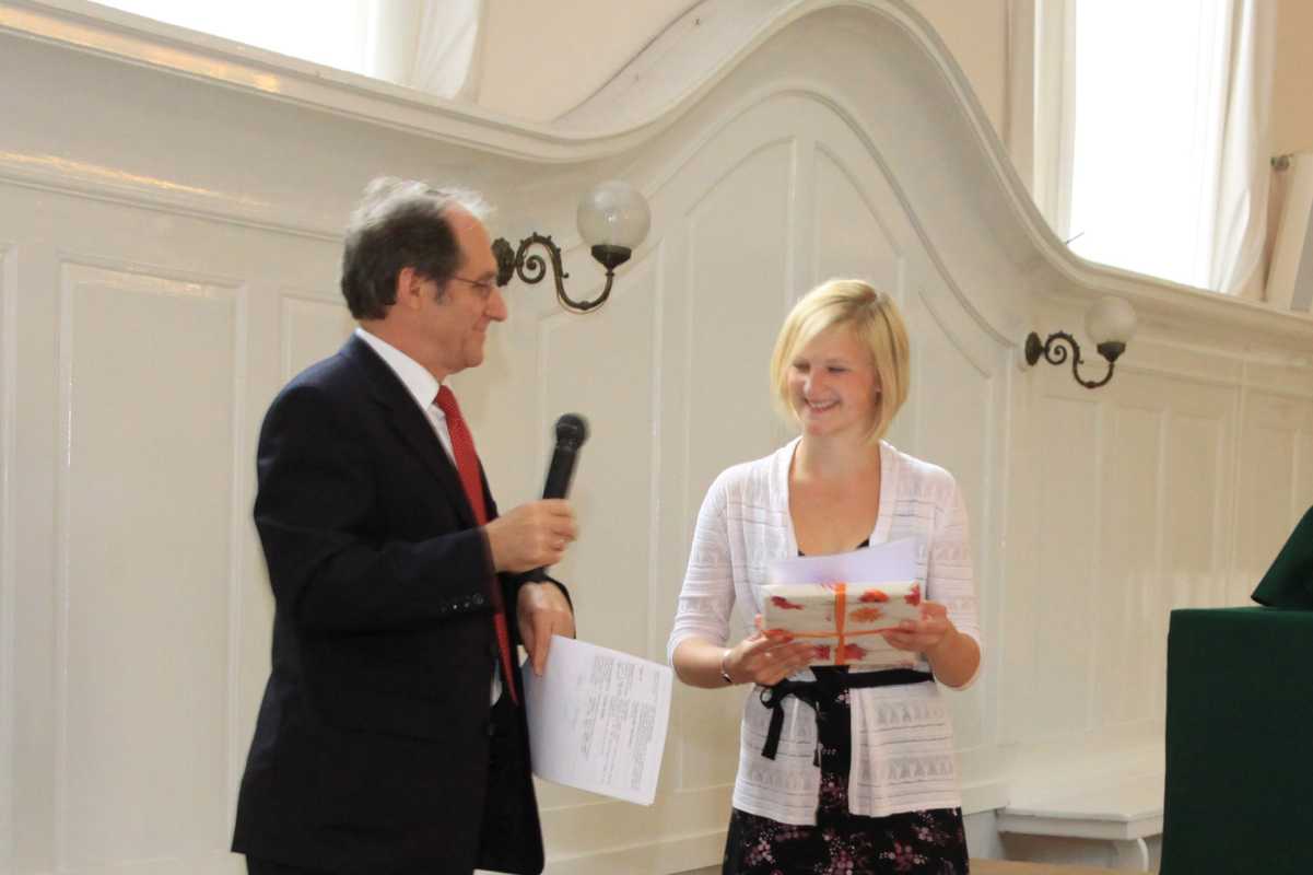 Auch in diesem Jahr wurden wieder Preise für besondere Leistungen vergeben. Am allgemeinbildenden Gymnasium gingen gleich drei Auszeichnungen (Mathematik, Scheffelpreis, Englisch) an Milena Kluge, die mit 860 Punkten ein glattes Einser-Abitur schaffte. Auch Claudius Schiffer bekam drei Preise (Theater, den Wettstein-Preis und den Erwin-Jäckle-Preis für hervorragende schulische Leistungen bei gleichzeitigem großem Engagement in anderen Bereichen der Schule). Weitere Auszeichnungen gingen an Simon Bohnacker (Spanisch), Carsten Flaig (Gemeinschaftskunde), Benjamin Aberle (Biologie und Chemie), Ruth Theresa Holtzhausen (Kunst) und Paula Carstens (Theater-Preis und Elternpreis für außerordentliches soziales Engagement).