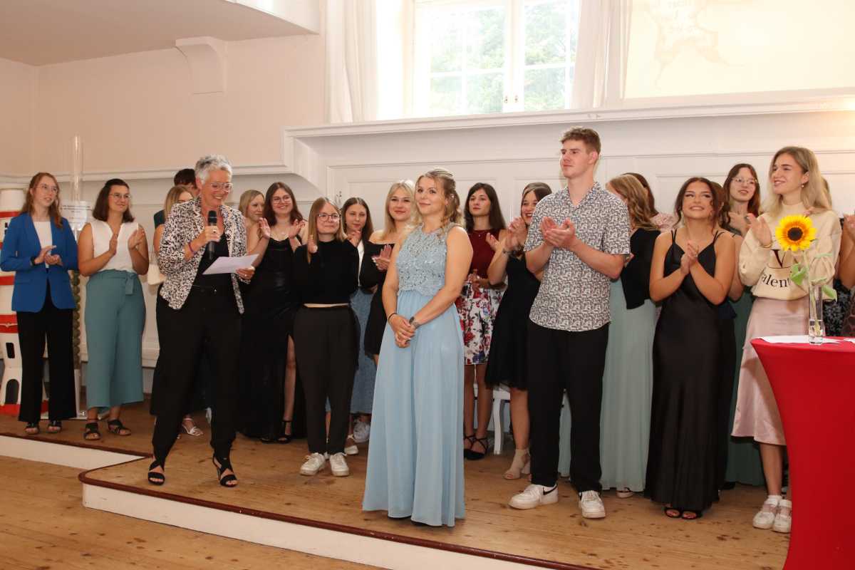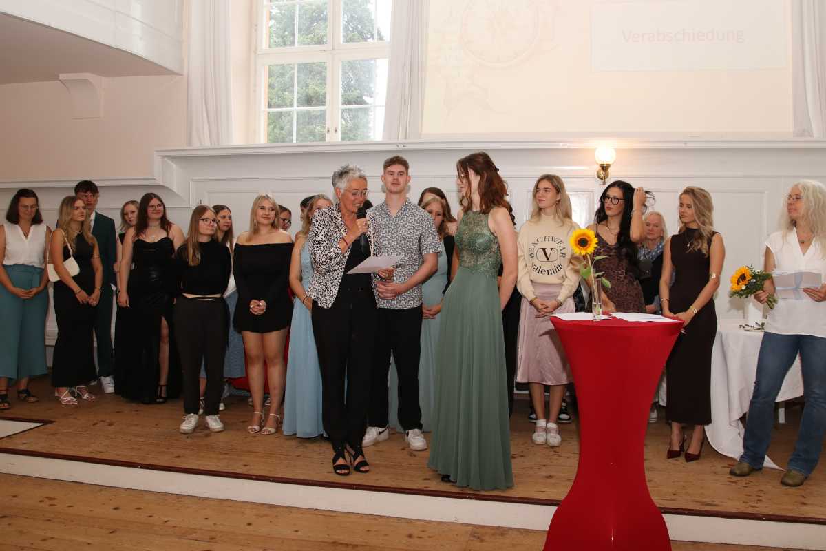 Sr. Bandholz, die Leiterin der Fachschulen, würdigte in ihrer Ansprache das große Engagement der Absolvent*innen sowie die hohen Anforderungen, denen sie während der zweijährigen Ausbildung begegnet sind. „Die Kompetenzen, die euer zukünftiger Beruf erfordert, sind ein umfassendes Paket – und ihr habt es euch mit Bravour angeeignet“, betonte sie.