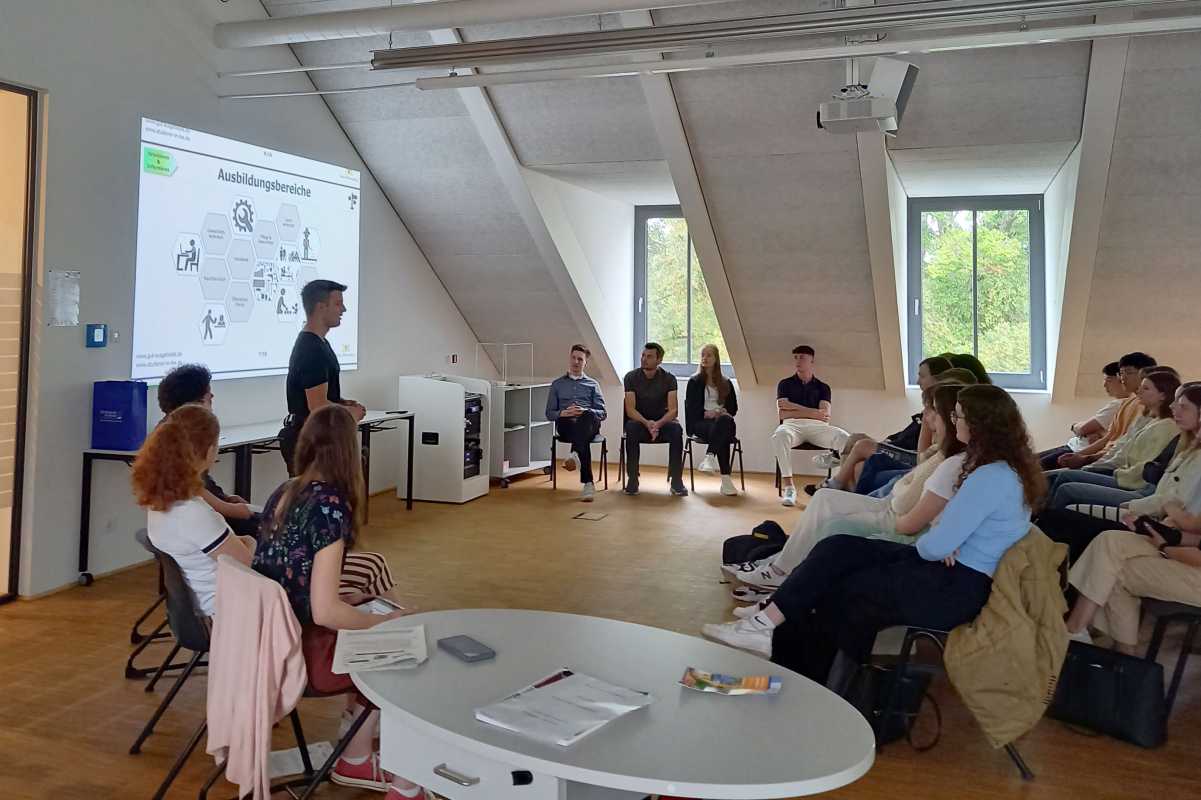 Die Berufsorientierung spielt am Gymnasium eine immer größere Rolle. Die Vielfalt der beruflichen Möglichkeiten ist für junge Menschen enorm. Um der Kursstufe des Zinzendorfgymnasiums bei ihrer Entscheidung zu helfen, kamen Ausbildungs- und Studienbotschafter nach Königsfeld. Sie schilderten die verschiedenen Möglichkeiten und berichteten von ihren eigenen Wegen in die Ausbildung oder ins Studium. Sie erzählten vom Orientierungstest, den es kostenlos und online gibt und der Voraussetzung für ein Studium in Baden-Württemberg ist. Beratungsmöglichkeiten, Bewerbungsfristen, Hochschularten und Ausbildungsvarianten wurden anschaulich präsentiert, ebenso finanzielle Aspekte.