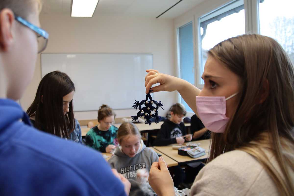 In diesem Jahr gibt es in Königsfeld endlich wieder einen Weihnachtsmarkt – und natürlich sind auch wir dabei und nutzen die Gelegenheit, etwas Gutes zu tun. Im Kunstunterricht werden Laubsägearbeiten hergestellt, in der 8a und 8c entsteht Baum- und Fensterschmuck als Upcycling-Projekt. Das Klassenzimmer ist voll mit Wolle, Perlen, Notenblättern, aus denen Engel entstehen und Papprollen, die sich mit ein bisschen Klebstoff und Farbe bald in schöne Sterne verwandeln.