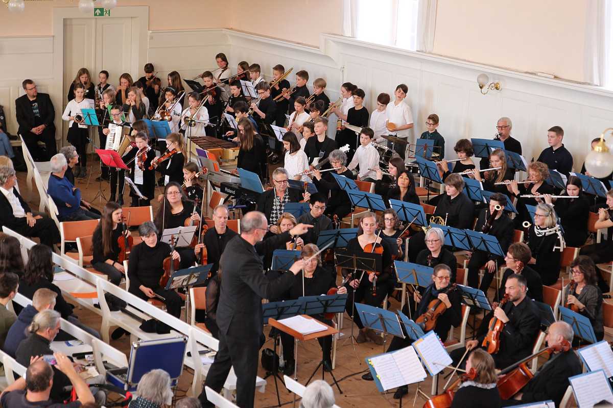 Helle Freude verbreiteten an diesem Nachmittag junge und erfahrene Musiker verschiedener Orchester der Zinzendorfschulen – nicht zu vergessen die Jazz-Band. Diese hatte mit „Start a fire“ das musikalische Feuerwerk gezündet und abwechselnd mit den Orchestern der fünften, sechsten und siebten Klassen dem Publikum im voll besetzten Kirchensaal eingeheizt.