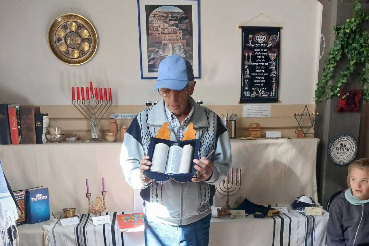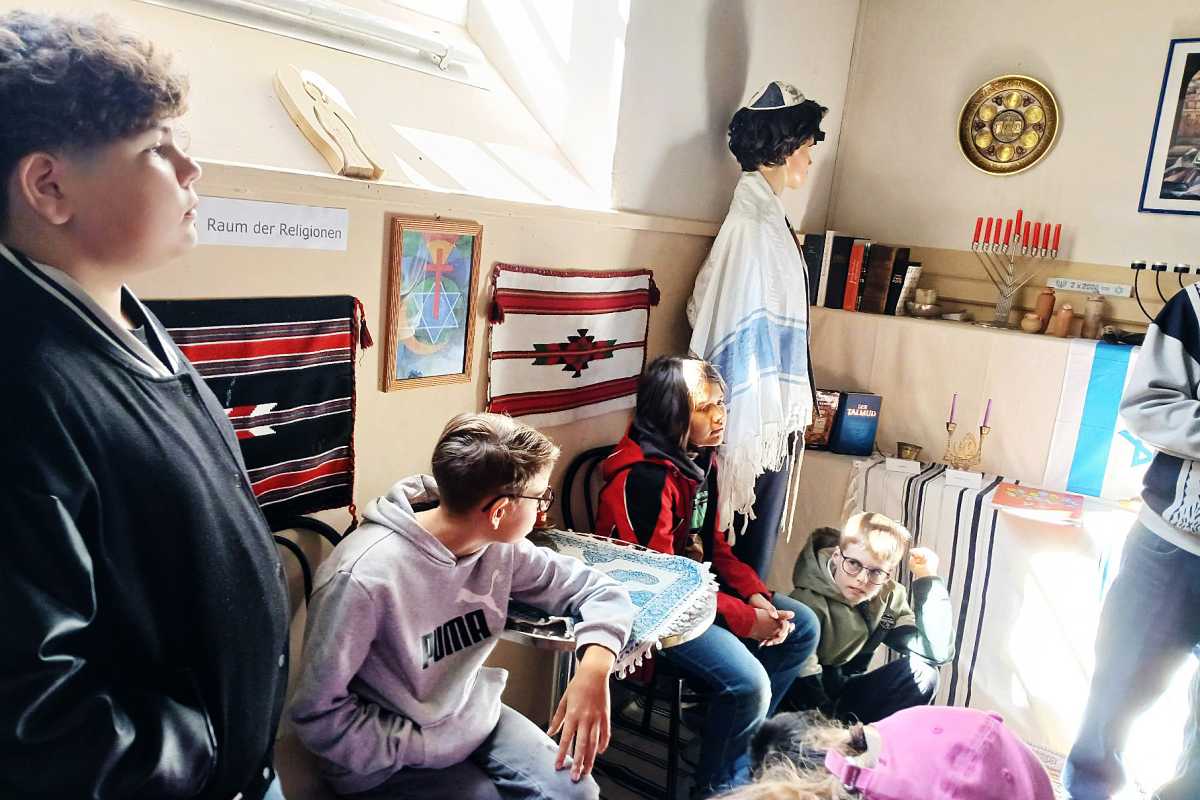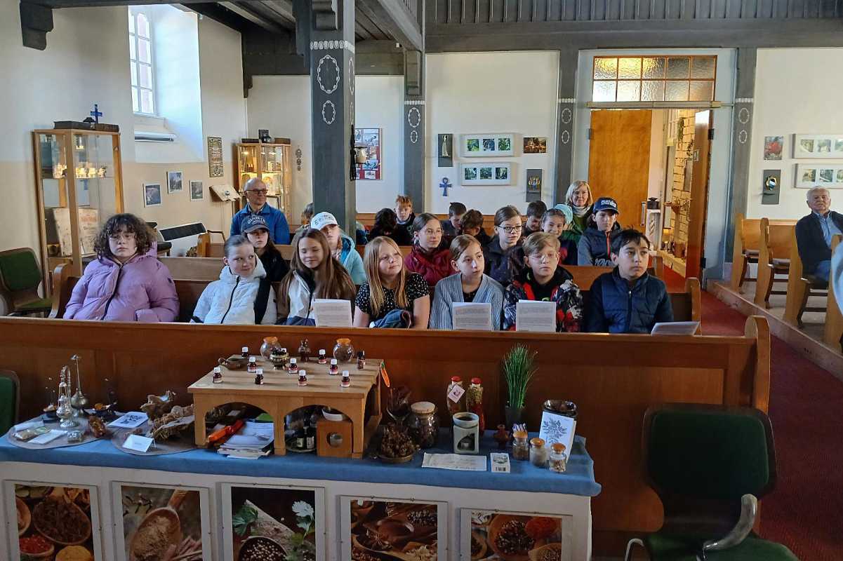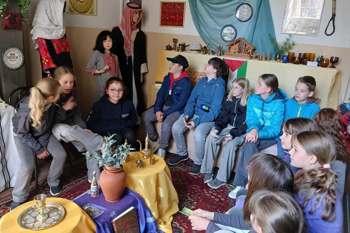 Statt trockener Lektüre erwartete die Schülerinnen und Schüler eine bunte Entdeckungsreise in die Welt der Bibel: Sie schnupperten an wohlriechenden Düften wie Weihrauch und Myrrhe aus dem Heiligen Land, bestaunten traditionelle Kleidung der Israeliten und umliegender arabischer Kulturen und erhielten einen Eindruck in die hebräische Sprache. Auch arabische Bücher zum Schreibenlernen weckten Neugier und Staunen.