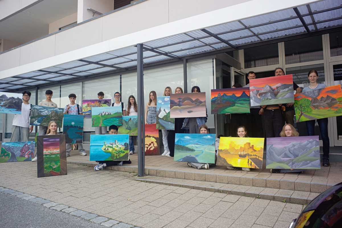 Auf Einladung von Alexander Höllwarth, der den ehemaligen KUNSTraum Königsfeld seit diesem Jahr als Galerie K³ betreibt, haben die Gemälde nun zum Abschluss des Schuljahres im Galerie-Schaufenster einen würdigen Platz gefunden. Spontan entstand die Idee, den planmäßigen Ausstellungswechsel in der Galerie für diese Präsentation zu nutzen.