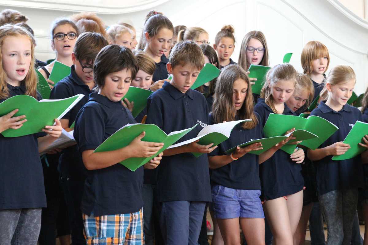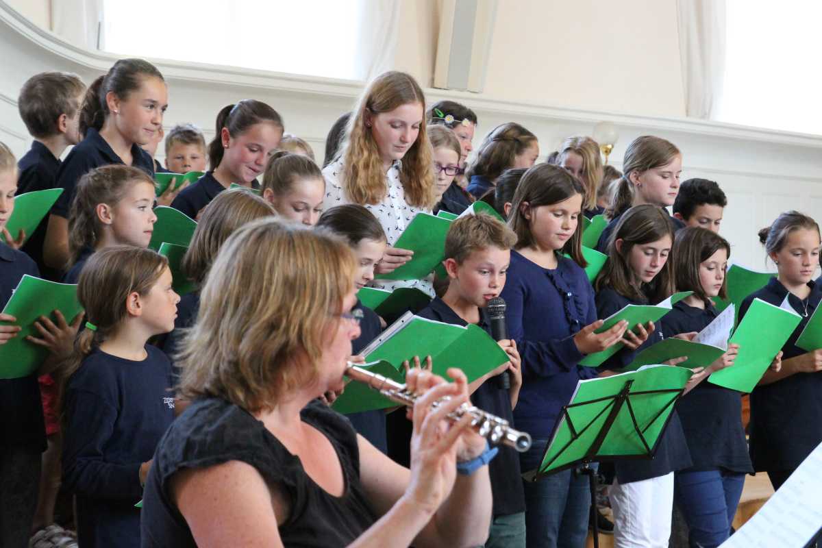 Ein Konzert mit gut 130 Musikern zu dirigieren ist immer ein Abenteuer. Eine kurzfristige Blinddarm-OP, ein Unfall mit dem Skateboard oder eine schnöde Sommergrippe der Solisten kann die schönste Planung durcheinander bringen. Wie gut, dass auch die ehemaligen Schüler den Zinzendorfschulen noch so verbunden sind, dass sie mal eben nur für einen Auftritt fast 200 Kilometer in den Schwarzwald fahren, um einzuspringen. So konnte das Publikum im voll besetzten Kirchensaal ein sorgsam vorbereitetes und mit viel Spaß vorgetragenes Konzert voller witziger Überraschungen genießen. Eine davon war, dass das Orchester nicht aufhört zu spielen und einfach den letzten Ton hält, obwohl Br. Michel sein Dirigentenpult in gespielter Resignation längst verlassen hat.Das Programm führte - mit Abstechern nach England und Amerika – thematisch von der antiken bis in die nordische Sagenwelt. „Norwegen ist ein Schwerpunkt, weil der große Chor und das Orchester im Sommer dorthin fahren“, erklärte Musiklehrer Br. Michel, der dem Sommerkonzert das Motto „Persephone trifft Peer Gynt“ gegeben hatte.