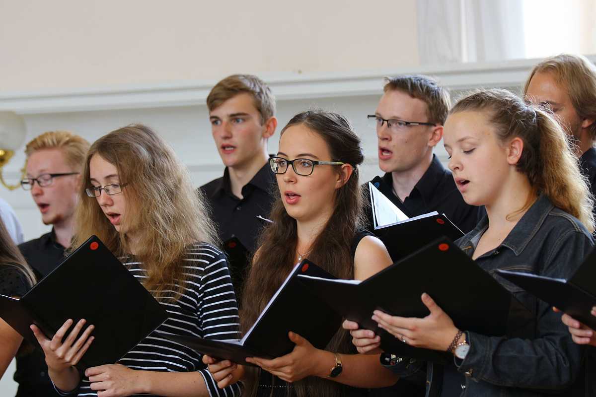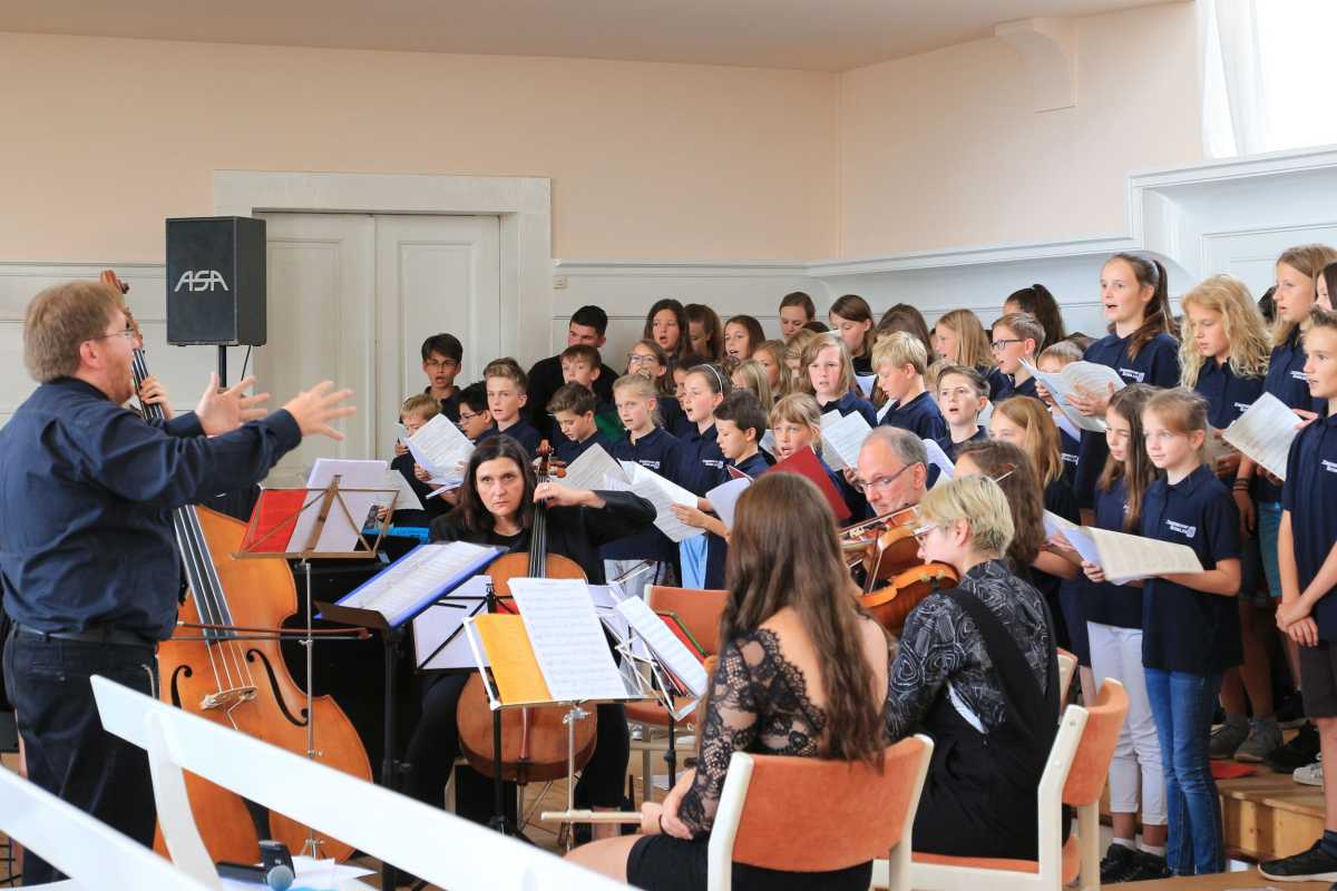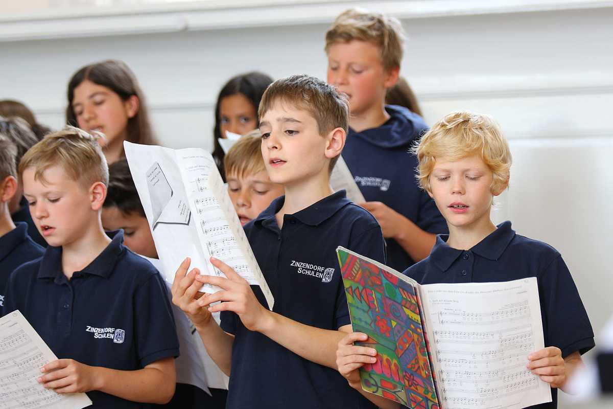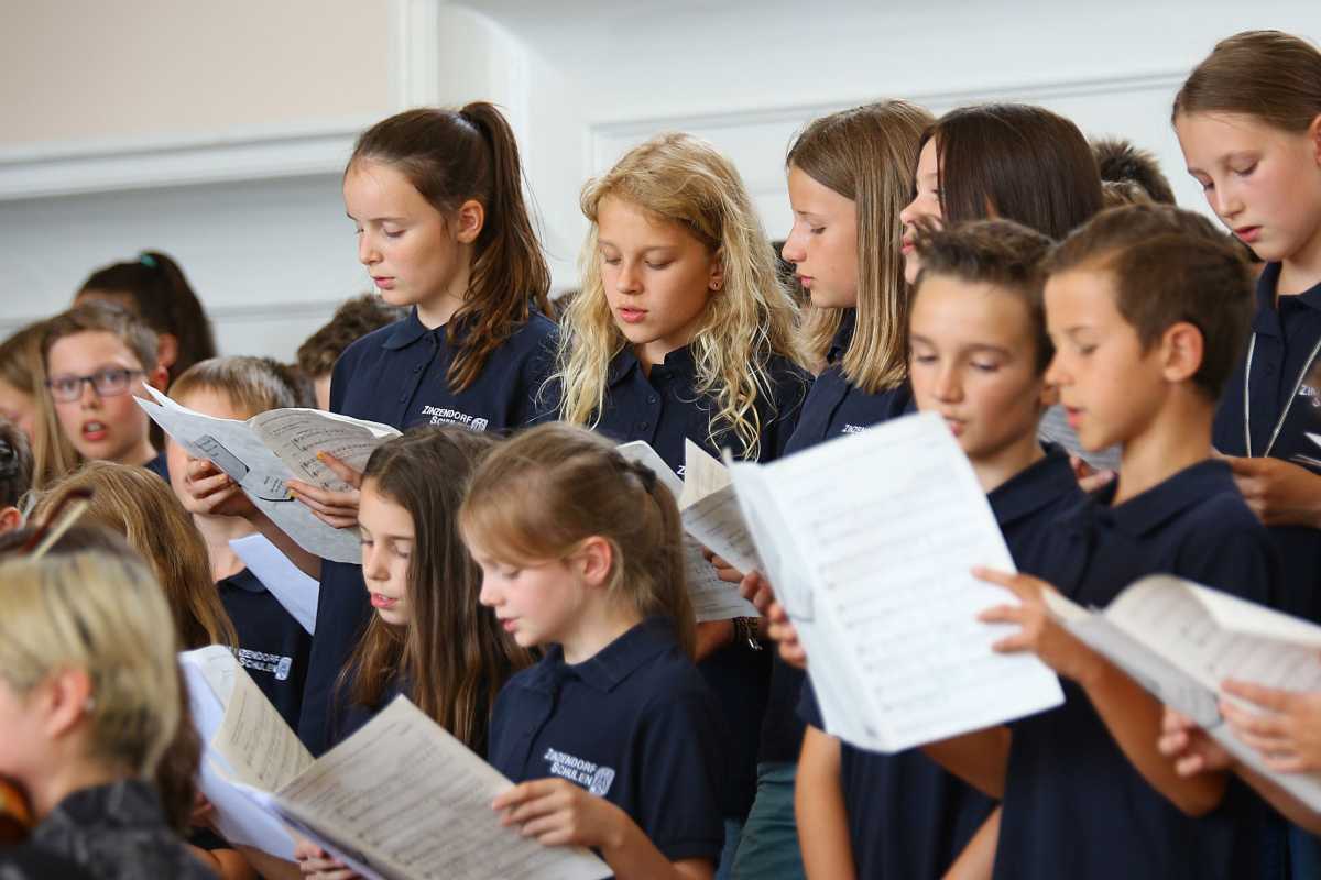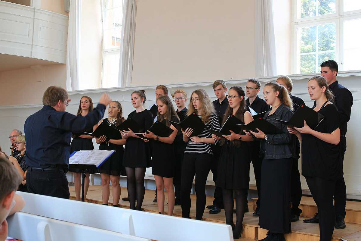 Feste soll man feiern, wie sie fallen, und so haben die Chöre und das Blasorchester der Zinzendorfschulen unter dem Titel „A Tribute to…“ beim Schulkonzert im Kirchensaal der Herrnhuter Brüdergemeine vielen Jubilaren der Musikgeschichte ein wundervolles Geschenk bereitet. Ob Gioacchino Rossini, Gustav Mahler, Leonard Bernstein, Claude Debussy und viele mehr – sie hätten bestimmt ihre helle Freude an der Interpretation ihrer Werke gehabt. Das Blasorchester eröffnete den Nachmittag mit einem sehr präzisen und gleichzeitig äußert mitreißendem Medley von Motiven aus der West Side Story. Mit „The Wrong Note Rag“ aus dem Musical „Wonderful Town“ erheiterte gleich zu Beginn des zweistündigen Konzerts ein weiteres Bernstein-Stück die zahlreich erschienenen Zuhörer.