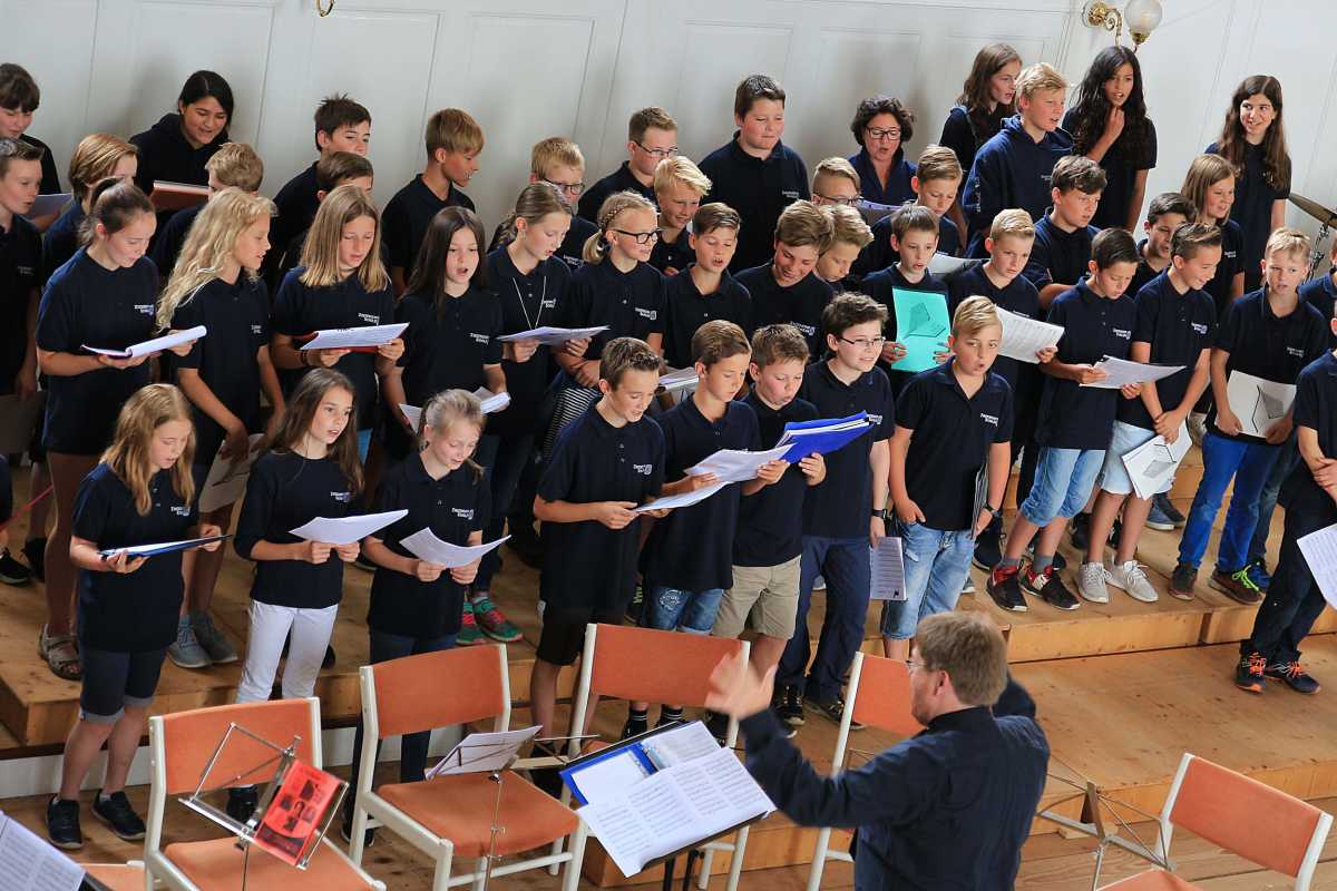 Beeindruckend war der Chor der fünften und sechsten Klassen, der mit drei Stücken aus dem Film „Die Kinder des Moniseur Mathieu“ überraschten – sie sangen perfekt auf Französisch, einer Fremdsprache, die zumindest bei den Fünftklässlern noch gar nicht auf dem Stundenplan steht. Die eingängige, melancholische Melodie des französischen Filmkomponisten Bruno Coulais schien nicht nur dem Publikum gefallen zu haben: Die Schülerinnen und Schüler sangen grüppchenweise die Lieder sogar noch am Montag nach dem Konzert auf dem Pausenhof.