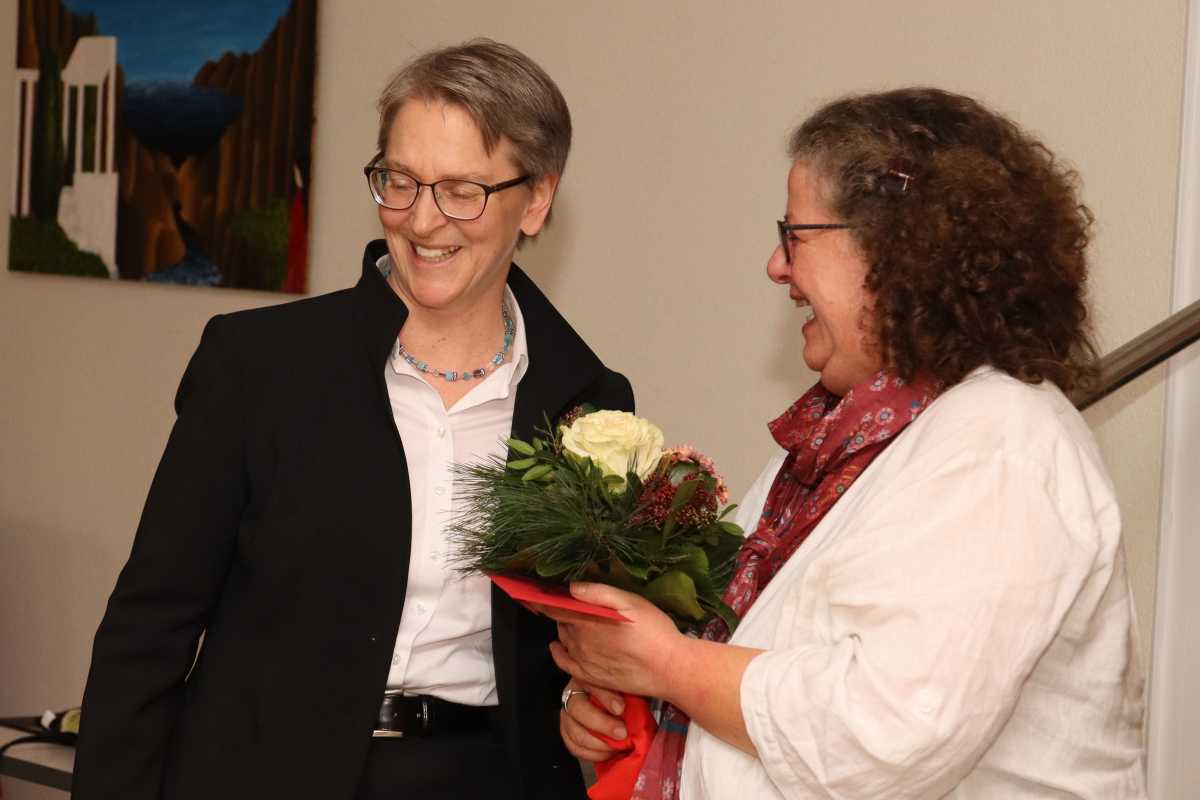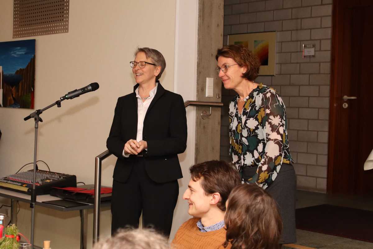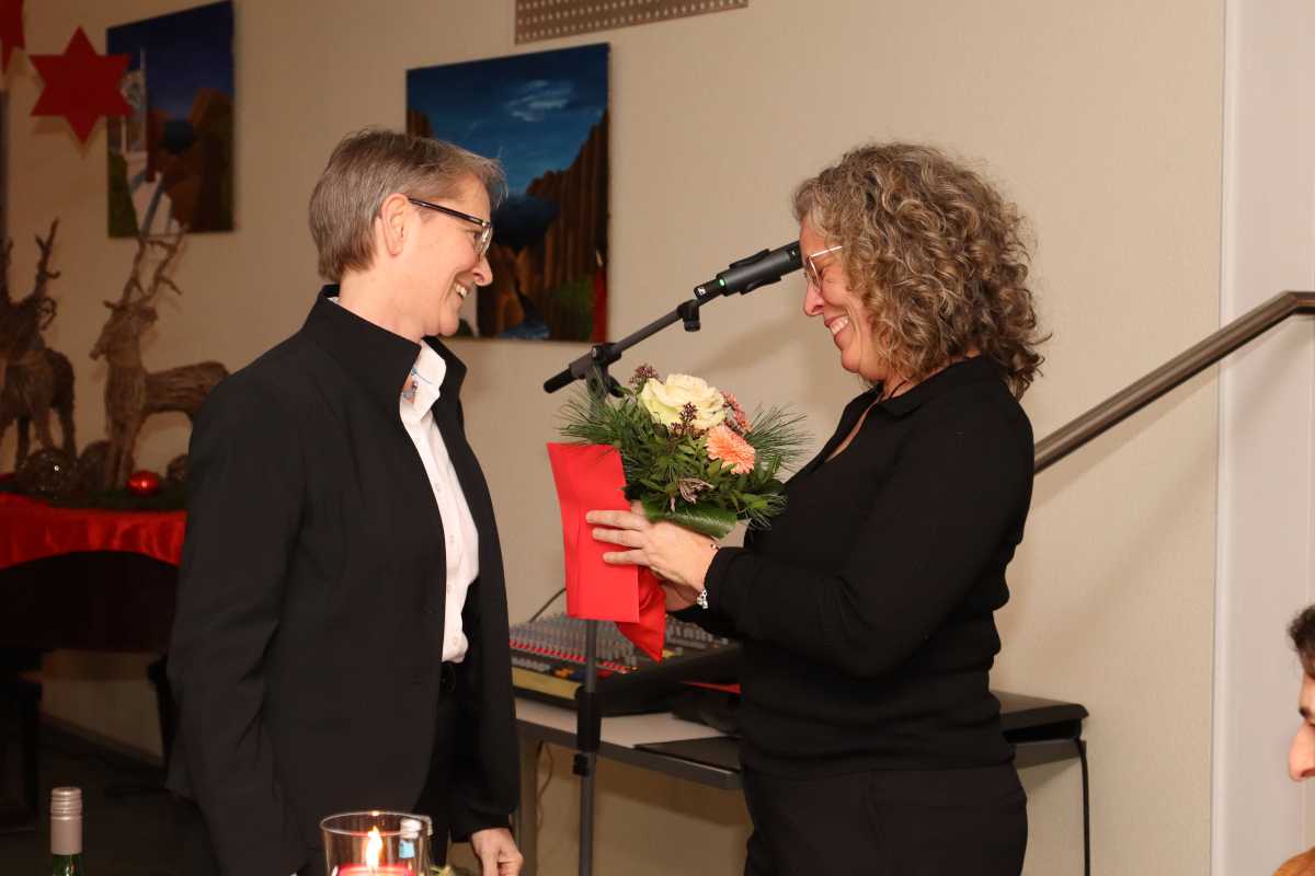 Auf stolze 35 Jahre als Hauswirtschaftsleiterin kann Marika Ohnmacht zurückblicken, die auch in diesem Jahr wieder die Mensa kreativ für die Weihnachtsfeier geschmückt hatte und damit dem kurzweiligen Abend mit vielen Gesprächen, Musik, einer Andacht und einem schmackhaften Buffet einen festlichen Rahmen gab.