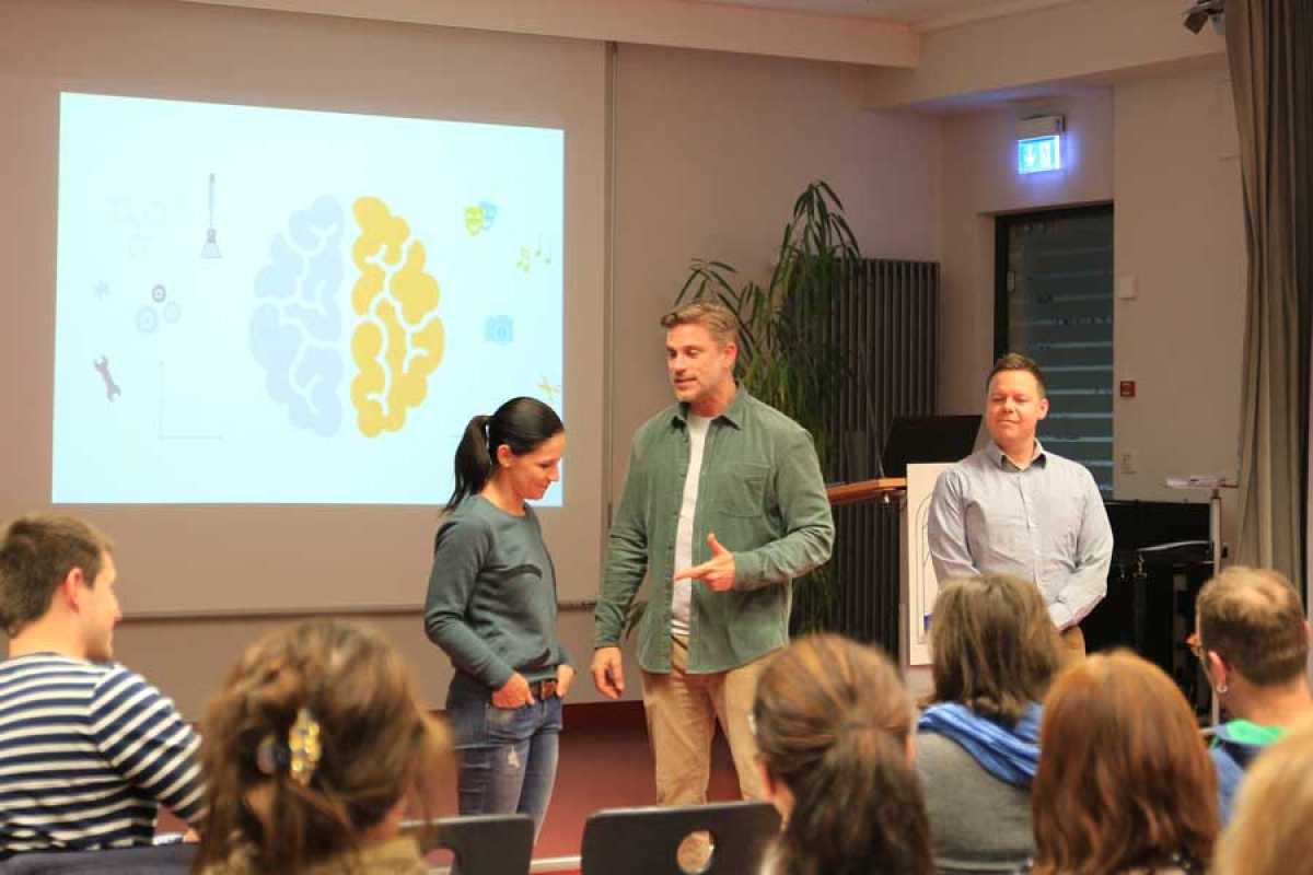 Der Linguist und Kommunikationstrainer Kary zeigte auf äußerst unterhaltsame Weise die Fallstricke auf, die in der Kommunikation lauern. So müsse etwa der emotionale Lerntyp gelobt werden, um zur Leistung angespornt zu werden. Er schilderte eine Situation, in der ein Kind stolz seinen Eltern ein Bild präsentierte, für das es im Kunstunterricht eine Eins bekommen hatte. „Es wäre schön, wenn Du auch mal in Mathe eine Eins schreiben würdest“, meinten diese – und haben damit eher das Gegenteil bewirkt.