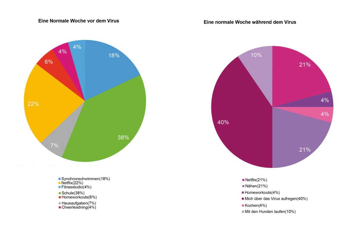 Im Religionsunterricht sollten die Schülerinnen und Schüler der 10c aufschreiben, wie das Virus ihr Leben verändert hat. Es ist sehr spannend zu sehen, wie unterschiedlich sich die Pandemie auswirkt. Es wird berichtet von spontanen Berufspraktika, geheimen Gottesdiensten und dem Entdecken ungeahnter Talente – sei es im Organisatorischen, beim Nähen oder Kochen. Wie sich der Alltag von Nelly verändert hat, zeigt sie in einer Statistik. Ihr gesamter Bericht und der von David sind hier nachzulesen.