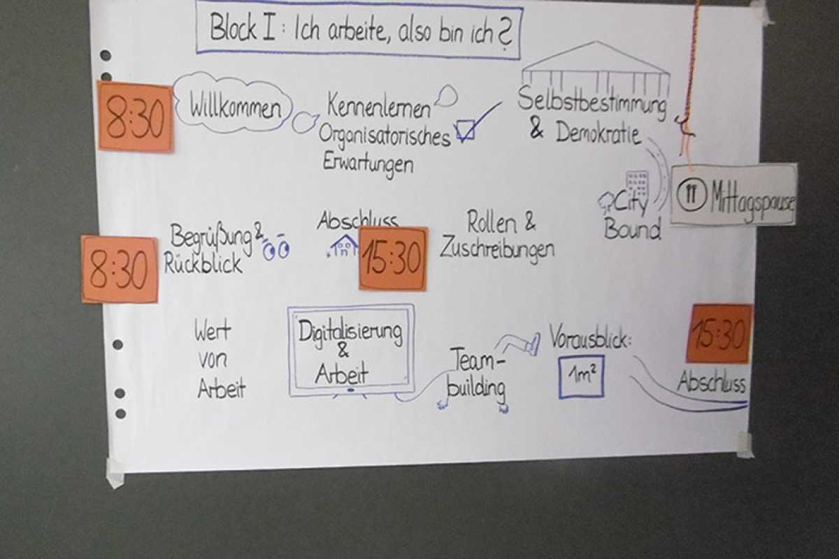 Dies geschah im Workshop ganz praktisch: So wurden die Teilnehmerinnen und Teilnehmer z.B. auf die Straße geschickt, wo sie mit Hilfe von Berufe-Bingo Passanten über ihre Berufe interviewen sollten. Dabei fragten sie, welche Aufgaben diese Berufe beinhalten und ob die Interviewten mit ihren Berufen zufrieden sind. Auch eine kritische Auseinandersetzung mit der modernen Arbeitswelt am Beispiel Digitalisierung stand auf dem Programm.