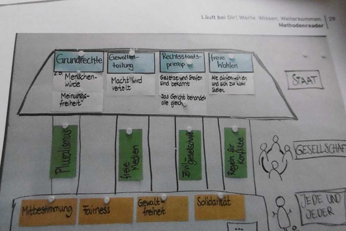 "Ich arbeite, also bin ich?“ Diese Frage regte in der ersten Projekteinheit des Demokratietrainings der Bundeszentrale für politische Bildung zum Nachdenken an. Die Mitarbeiter Swen Kausemann und Lisa-Julia Grossmann waren nach Königsfeld gekommen, um den Schülerinnen und Schülern des einjährigen Berufskollegs für Sozialpädagogik die Vielschichtigkeit von Demokratie zu zeigen.