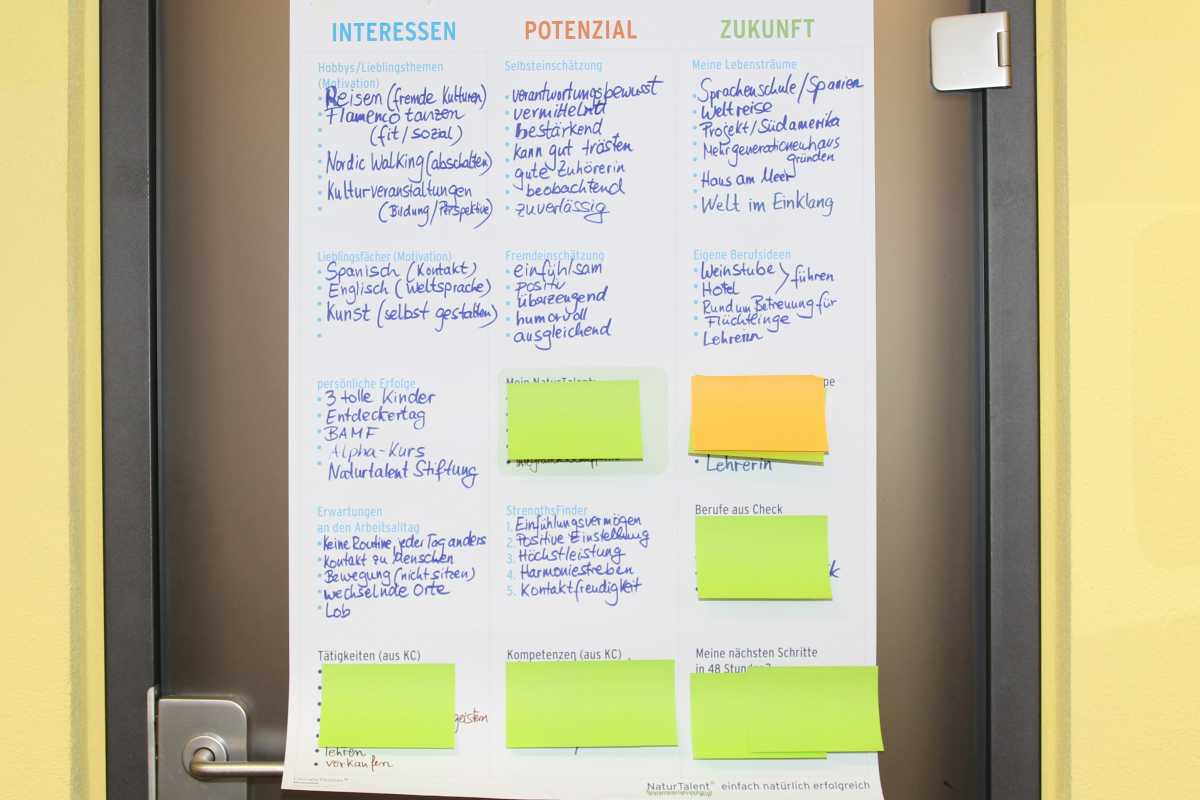 Schon im Vorfeld hatten sie zu Hause in Ruhe eine Reihe aufeinander abgestimmte Tests durchgeführt, mehr über ihre Interessen, Stärken und Zukunftsvorstellungen herauszufinden. Dabei waren nicht nur die eigenen, sondern auch die Einschätzungen von Freunden und der Familie wichtig.