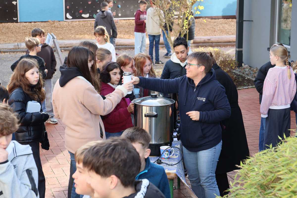 Unser schöner Fairtrade-Kiosk direkt neben dem Lehrerzimmer hat seit heute wieder geöffnet! Betrieben wird er von den sechs engagierten Mitgliedern der Fairtrade-AG unter der Leitung von Sr. Maier und Sr. Kodweiß. Zur Wiedereröffnung gab es in der ersten großen Pause eine Runde heißen Kakao für alle – wahlweise mit Kuh- oder Hafermilch.
