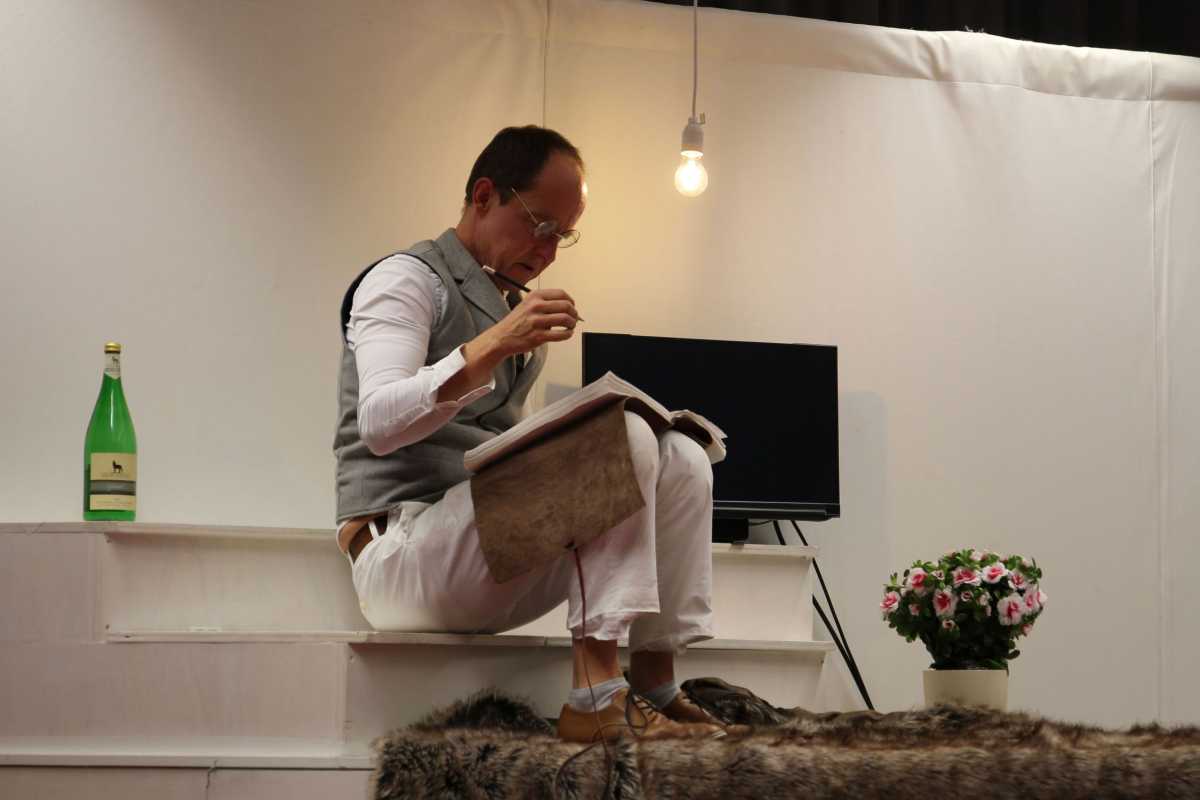 Eine gute Theater-Inszenierung kann sehr dabei helfen, ein Buch oder einen Autor zu verstehen. Nach Kafka und Büchner hat sich das Theater mobile Spiele nun einem neuen Schwerpunktthema des baden-württembergischen Abiturs gewidmet: Hermann Hesses „Steppenwolf“. In einer nichtöffentlichen Veranstaltung durften die Abiturienten der beruflichen und allgemeinbildenden Zinzendorfgymnasien im Haus Katharina von Gersdorf erleben, wie nicht nur die Hauptperson Harry Haller, sondern auch viele andere Charaktere aus dem Magischen Theater wie Hermine und Pablo, Gustav und Marie, lebendig wurden – und das in einem Ein-Personen-Stück.