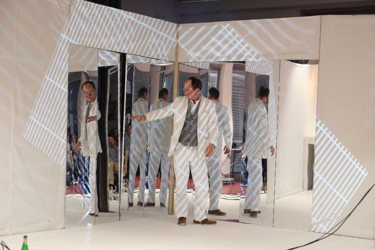 Unter der Regie von Thorsten Kreilos überzeugt Julian W. Koenig live als Harry, die anderen Personen hatte er zuvor eingespielt und agiert mit ihnen. Mal werden sie auf die Bühnenwand projiziert, ein andermal tauchen sie in einem kleinen Flachbild-Fernseher auf. Der extrem wandlungsfähige Schauspieler wurde von der kreativen Regie so platziert, dass die Figuren auf ihn zu reagieren scheinen.