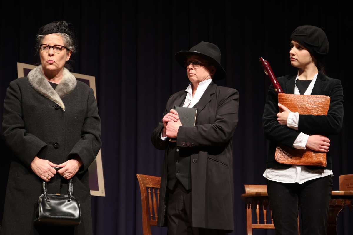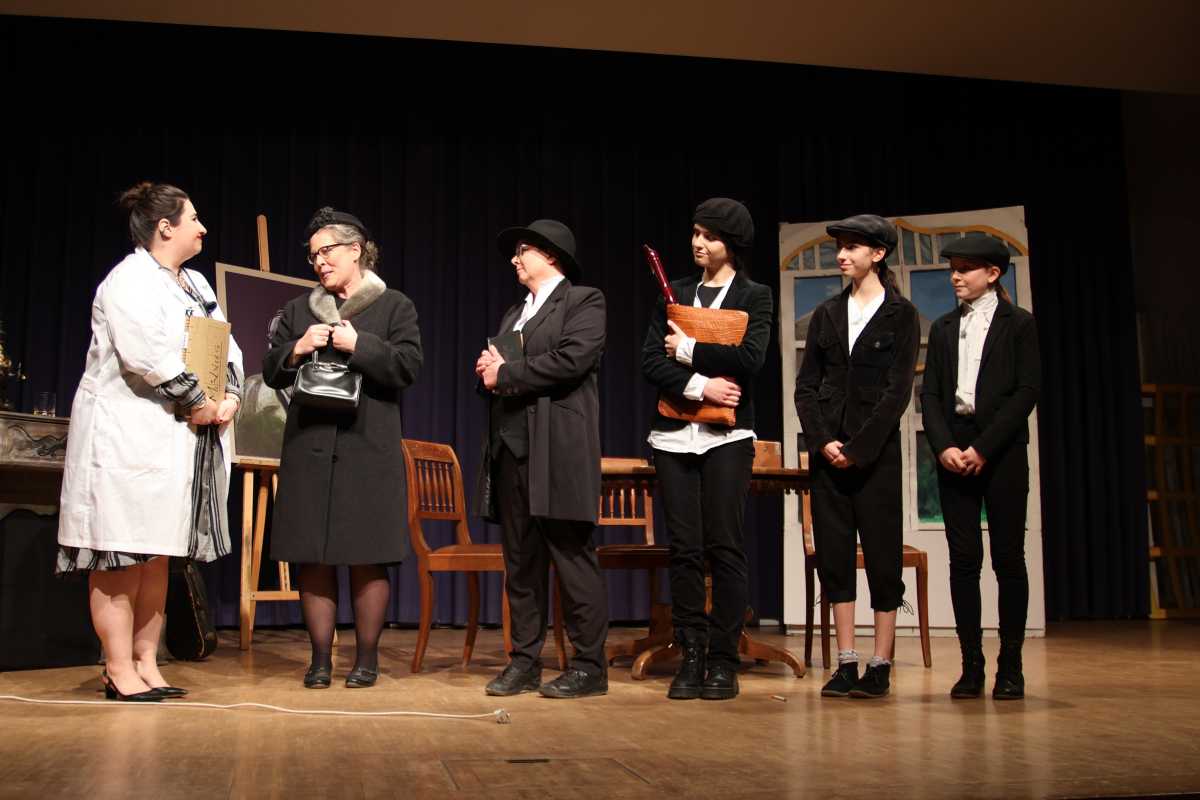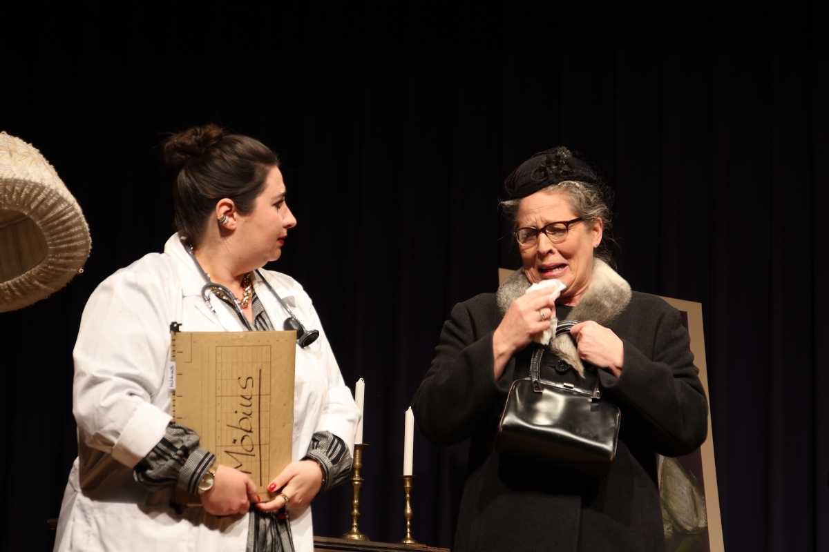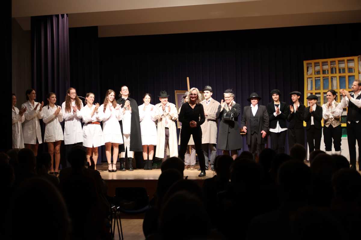 Unter der Regie der erfahrenen Theaterfrau Sr. Milbradt gelang es dem Ensemble, die absurde, aber hochaktuelle Handlung Dürrenmatts mit viel Esprit und Tiefgang auf die Bühne zu bringen. Alle Darsteller*innen blieben stets in ihren Rollen und vermittelten die komplexen Charaktere mit beeindruckender Glaubwürdigkeit. Die Kunst der Maskenbildnerinnen tat dabei das Ihrige, auch das stimmige Bühnenbild vom Kunst-Leistungskurs und der Kunstlehrerin Sr. Saurer schuf eine perfekte Atmosphäre, die die Charaktere lebendig werden ließen.