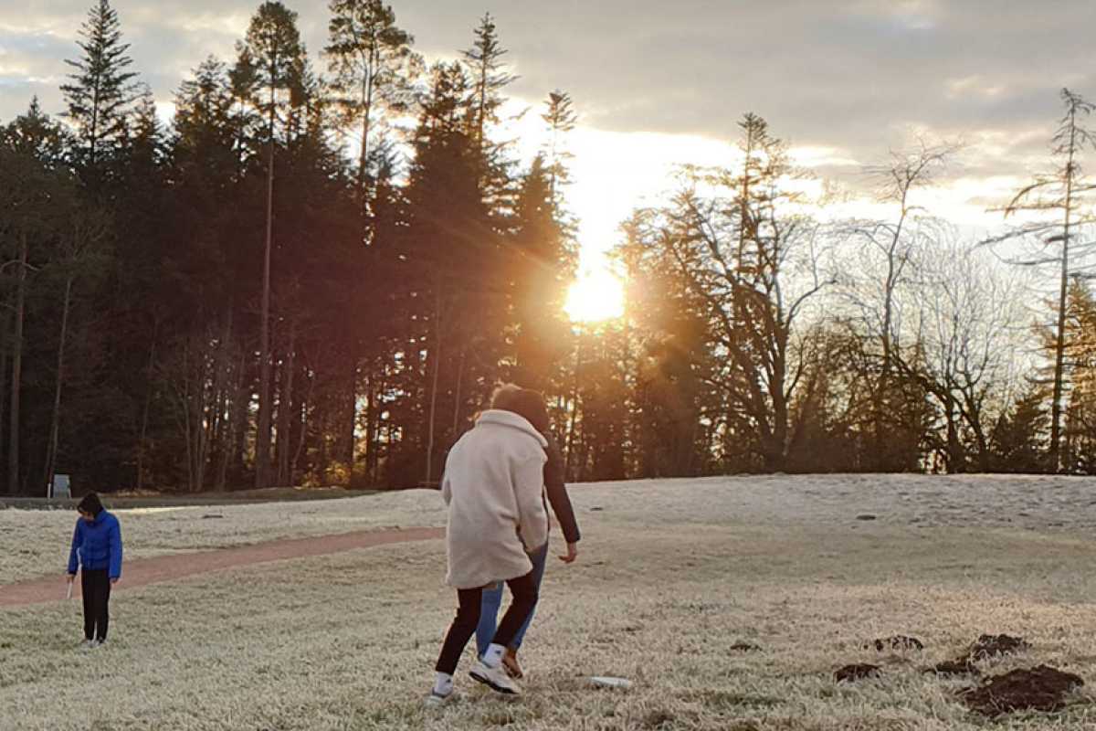 Als kleinen Muntermacher in der ersten Stunde hat Br. Moll seinen Sportunterricht der 10 c am vergangenen Freitag kurzerhand nach draußen verlegt. Im nahen Wald pobierten die Schülerinnen und Schüler den neu angelegten Disc-Golf-Parcours aus und hatten viel Spaß dabei.