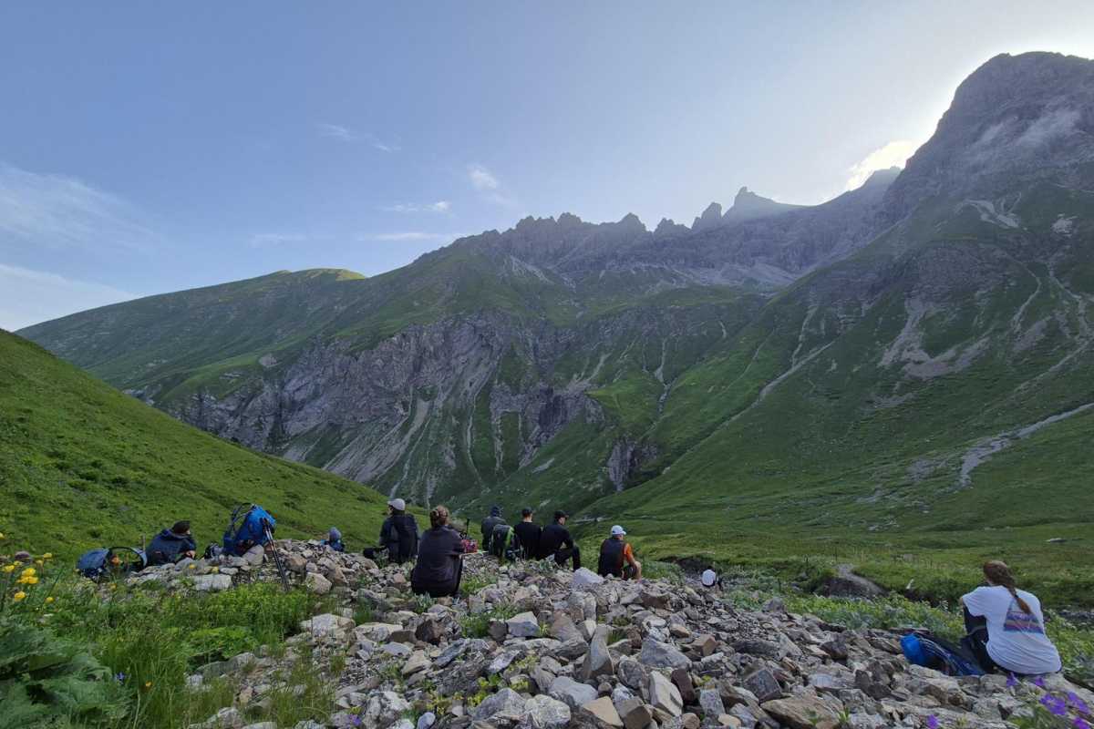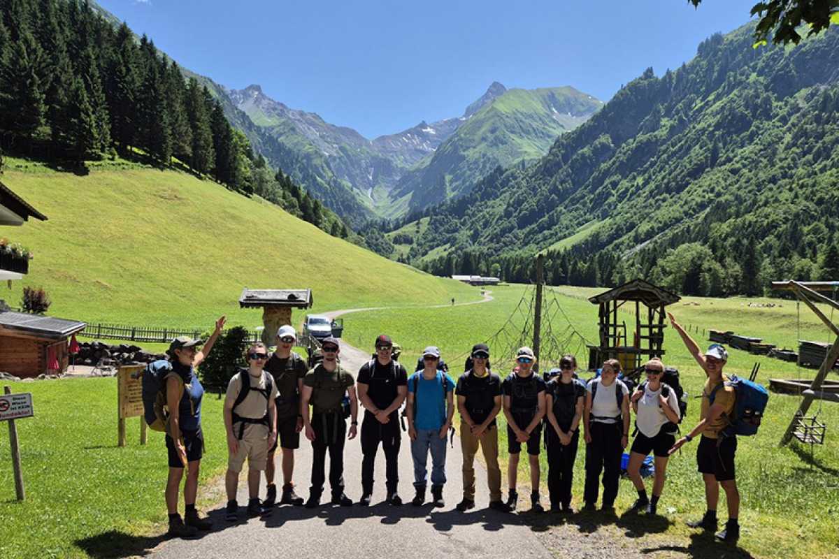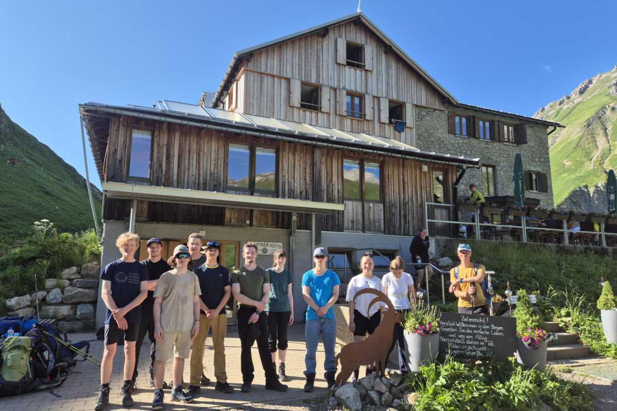 Gemeinsam als Geographie-Leistungskurs starteten wir unsere dreitägige Exkursion in die Allgäuer Alpen, um Spuren der vergangenen Eiszeiten und noch bestehender Vergletscherung zu finden. Als „Geo-Elite" begannen wir mit der Anfahrt über das Altmoränenhügelland. Erster Stopp war eine Rissendmoräne vor Meßkirch. Nach einer kurzen Pause und fachkundigen Erläuterungen ging es weiter über das Jungmoränenhügelland nach Pfullendorf, zu einem Kieswerk. Dort konnten wir weitere Endmoränen der Würmeiszeit bestaunen, die vor etwa 115.000 bis 11.600 Jahren entstanden sind. Der dritte und letzte Stopp des ersten Tages befand sich im Deggenhauser Tal. Hier besichtigten wir verschiedene Talformen, Gesteinsformationen und ein beeindruckendes Toteisloch. Danach brachte uns der Schulbus zum Langlaufstadion in Oberstdorf im Allgäu. Nach einer kurzen Fahrt mit dem Bergsteigerbus starteten wir als 12-köpfige Gruppe den Aufstieg zur Kemptner Hütte, welcher unser Schlafplatz für die kommenden 2 Nächte sein sollte. 700 Höhenmeter auf 7 km Wegstrecke. Trotz stundenlangem Aufstieg bei großer Hitze gab es keine Beschwerden innerhalb unserer Gruppe, nur die wunderschöne Aussicht brachte uns auch mal zum Pausemachen. Nach so einem eindrucksvollen ersten Tag war der Rinderbraten auf der Hütte mehr als verdient! Nach der Stärkung suchten wir den Kontakt zur Außenwelt und begaben uns zu einem Punkt, an dem es zumindest etwas Empfang gab. Dabei leisteten uns viele Murmeltiere auf den Wiesen Gesellschaft.