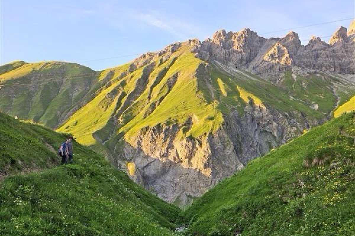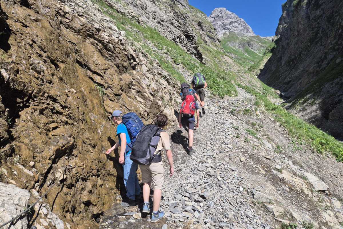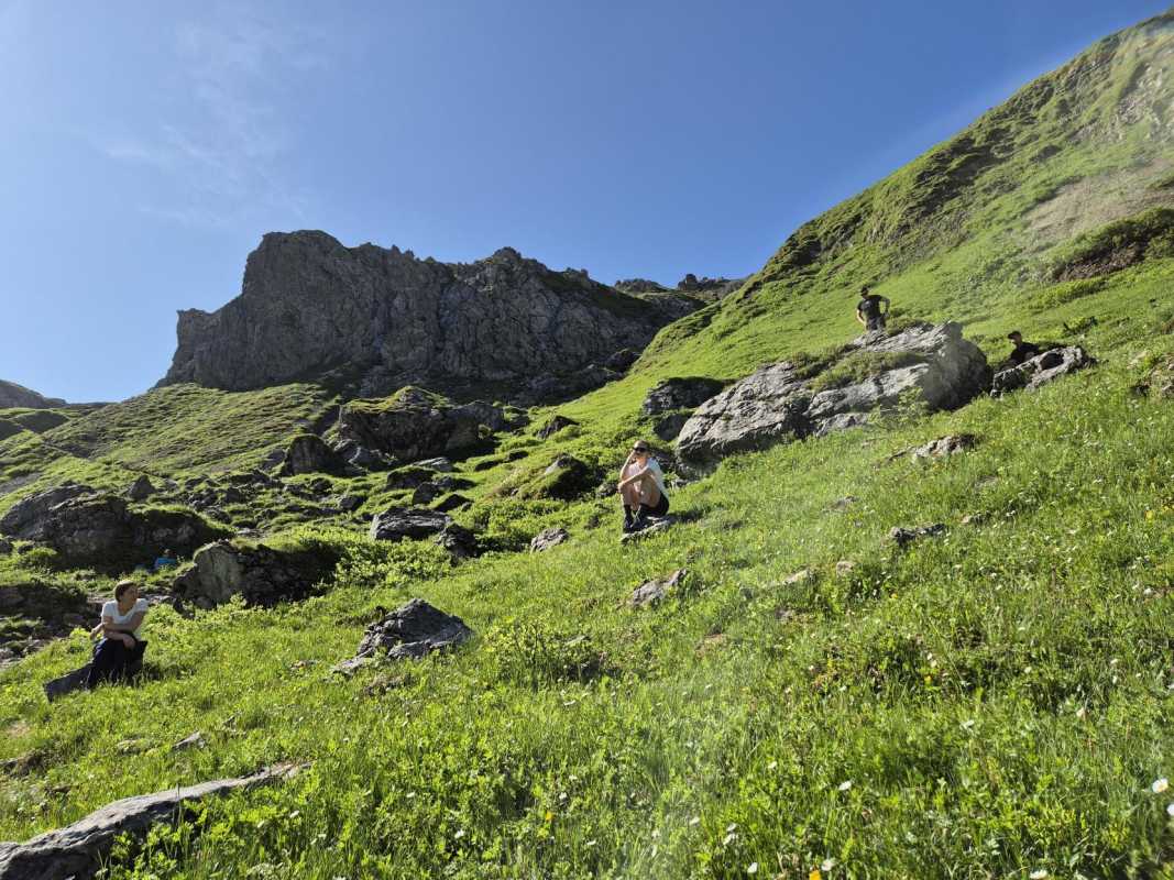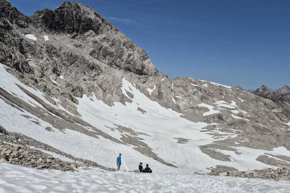 Gemeinsam als Geographie-Leistungskurs starteten wir unsere dreitägige Exkursion in die Allgäuer Alpen, um Spuren der vergangenen Eiszeiten und noch bestehender Vergletscherung zu finden. Als „Geo-Elite" begannen wir mit der Anfahrt über das Altmoränenhügelland. Erster Stopp war eine Rissendmoräne vor Meßkirch. Nach einer kurzen Pause und fachkundigen Erläuterungen ging es weiter über das Jungmoränenhügelland nach Pfullendorf, zu einem Kieswerk. Dort konnten wir weitere Endmoränen der Würmeiszeit bestaunen, die vor etwa 115.000 bis 11.600 Jahren entstanden sind. Der dritte und letzte Stopp des ersten Tages befand sich im Deggenhauser Tal. Hier besichtigten wir verschiedene Talformen, Gesteinsformationen und ein beeindruckendes Toteisloch. Danach brachte uns der Schulbus zum Langlaufstadion in Oberstdorf im Allgäu. Nach einer kurzen Fahrt mit dem Bergsteigerbus starteten wir als 12-köpfige Gruppe den Aufstieg zur Kemptner Hütte, welcher unser Schlafplatz für die kommenden 2 Nächte sein sollte. 700 Höhenmeter auf 7 km Wegstrecke. Trotz stundenlangem Aufstieg bei großer Hitze gab es keine Beschwerden innerhalb unserer Gruppe, nur die wunderschöne Aussicht brachte uns auch mal zum Pausemachen. Nach so einem eindrucksvollen ersten Tag war der Rinderbraten auf der Hütte mehr als verdient! Nach der Stärkung suchten wir den Kontakt zur Außenwelt und begaben uns zu einem Punkt, an dem es zumindest etwas Empfang gab. Dabei leisteten uns viele Murmeltiere auf den Wiesen Gesellschaft.