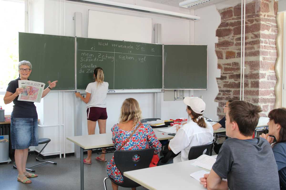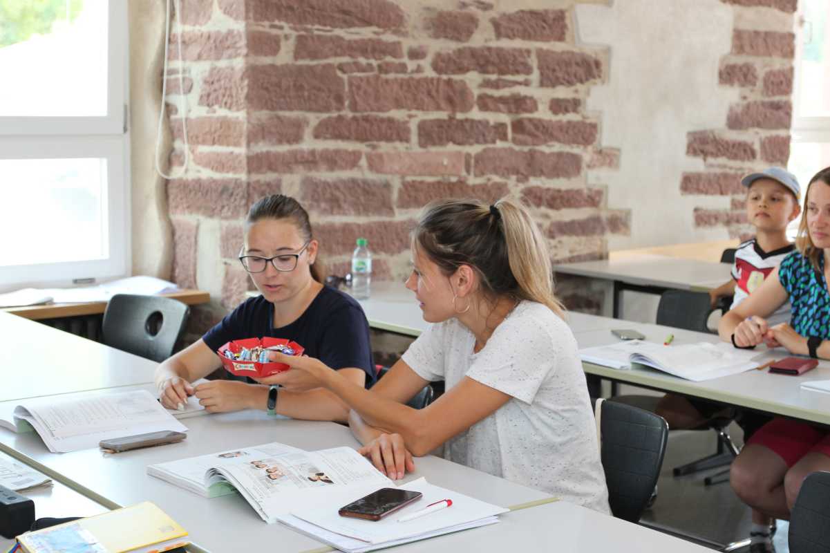 „Magst Du Schokolade?“, fragt die Deutschlehrerin Sr. Maurer, eine Packung mit Süßigkeiten in der Hand, zu Beginn einer jeden Stunde, in der sie ukrainischen Geflüchteten Sprachkenntnisse vermittelt. Wenn diese ihre Frage in einem ganzen Satz bejahen, dürfen sie sich ein Stückchen nehmen und mit den Süßwaren gleich die Frage weiterreichen. Das kleine Ritual hilft dabei, die Scheu vor der fremden Sprache abzulegen, denn damit ist schon mal ein Anfang gemacht.