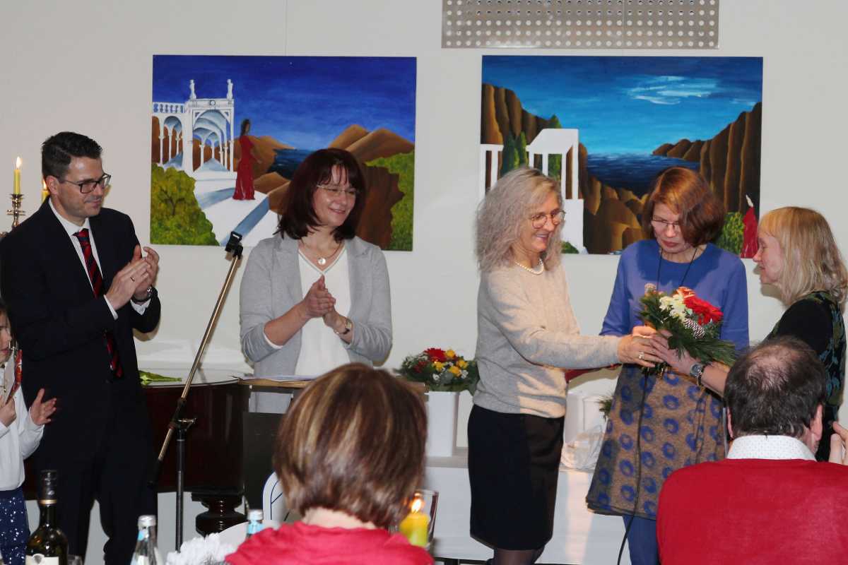 Schulleiterin Sr. Biederbeck, die Abteilungsleiter der Schularten und Verwaltungsleiter Br. Banholzer bedankten sich bei den Jubilaren.