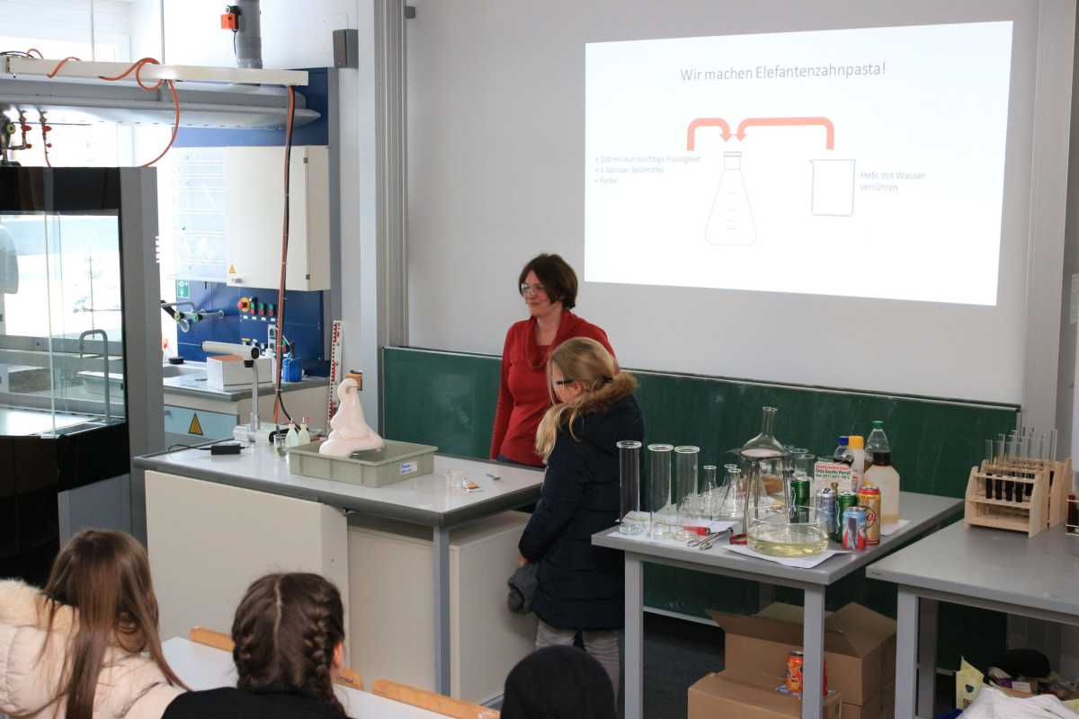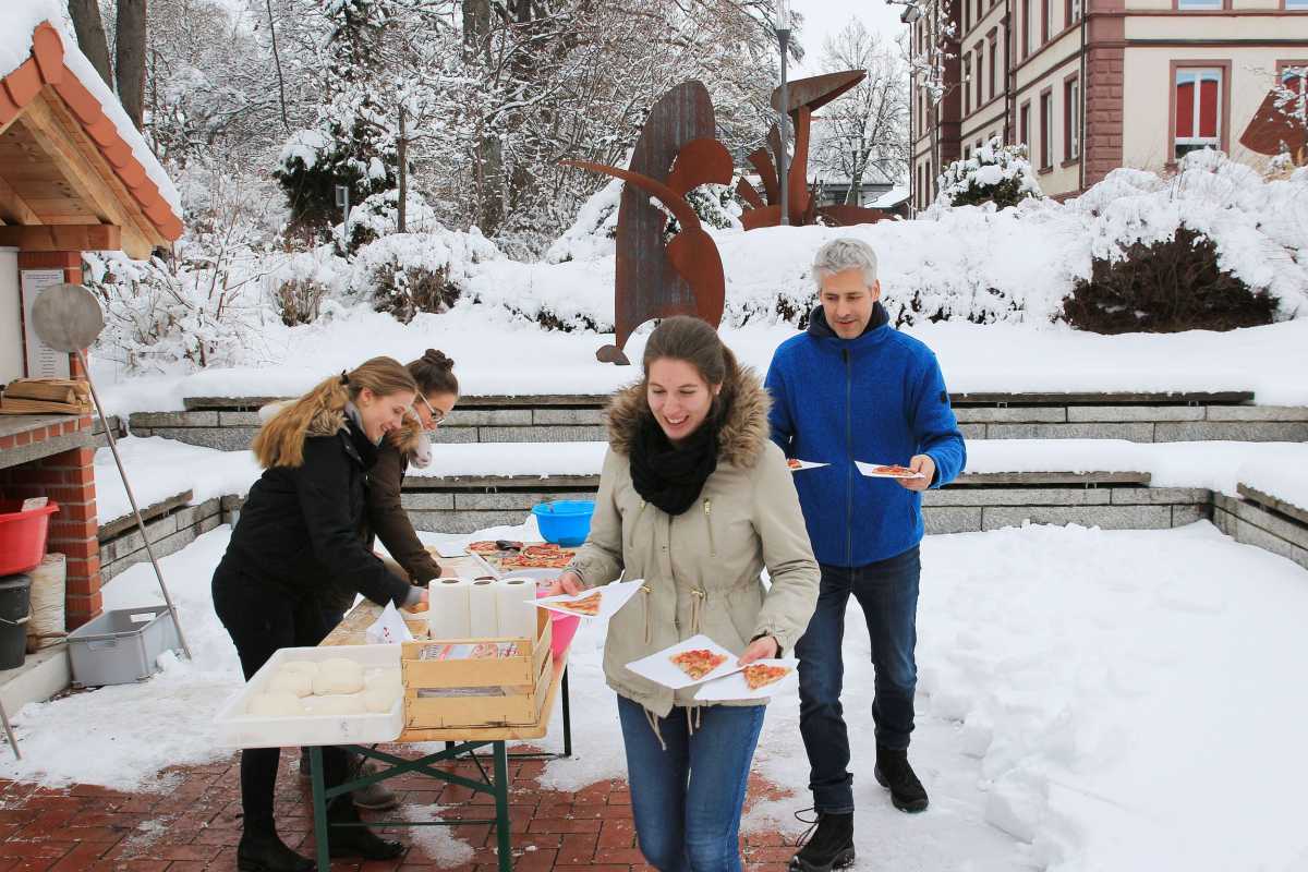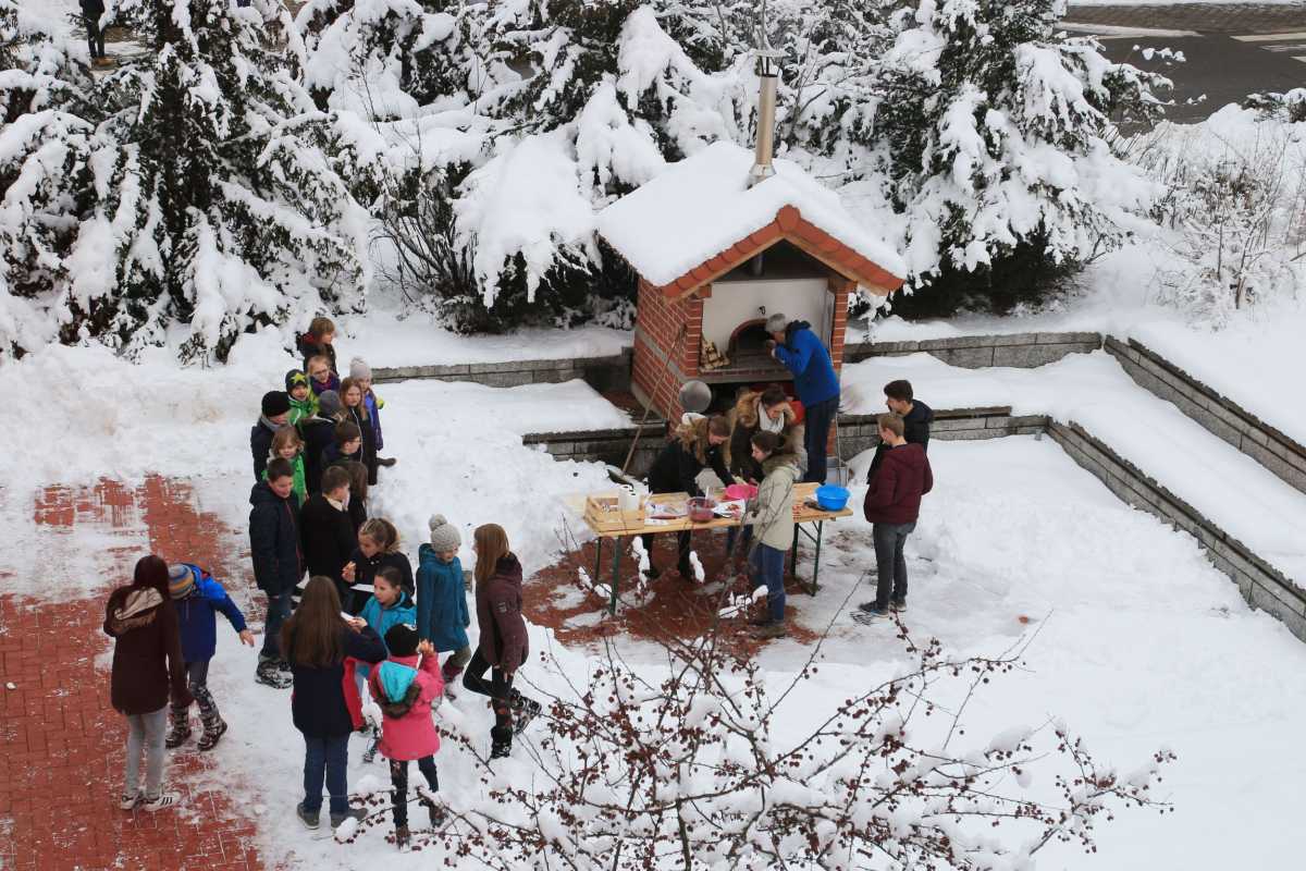 Währenddessen tobten sich ihre Kinder beim „Spiel ohne Grenzen“ in der Turnhalle aus, staunten im Chemiesaal über „Elefantenzahnpasta“, bauten im Werkraum Kreisel aus Holz und erfuhren aus erster Hand von den Zinzendorfschülern, was ihre Schulzeit in Königsfeld ausmacht . Und weil zu einer richtigen Party natürlich auch leckere Verpflegung gehört, sorgte die Back-AG für selbstgebackene Pizza aus dem Holzofen, an anderen Stationen konnten sich die Viertklässler mit Laugenstangen, Waffeln und Getränken stärken.