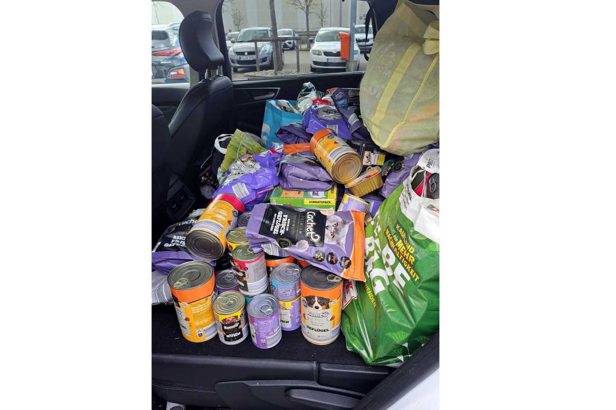 Die von der Discounter-Filiale im Vorfeld über Wochen gesammelten leeren Bananenkisten füllten sich ebenso schnell wie die von der Tafel zur Verfügung gestellten Mehrwegkisten. Es wurde so viel gespendet, dass die Tafel-Mitarbeitenden mit einem großen statt dem üblichen kleinen Sprinter kommen mussten, und sogar der war bis obenhin voll. Auch die Tierhilfe hatte ziemliche Mühe, alles, was nach der ersten Abholung am Samstag dazu kam, nach dem Wochenende noch ins Auto zu bekommen.