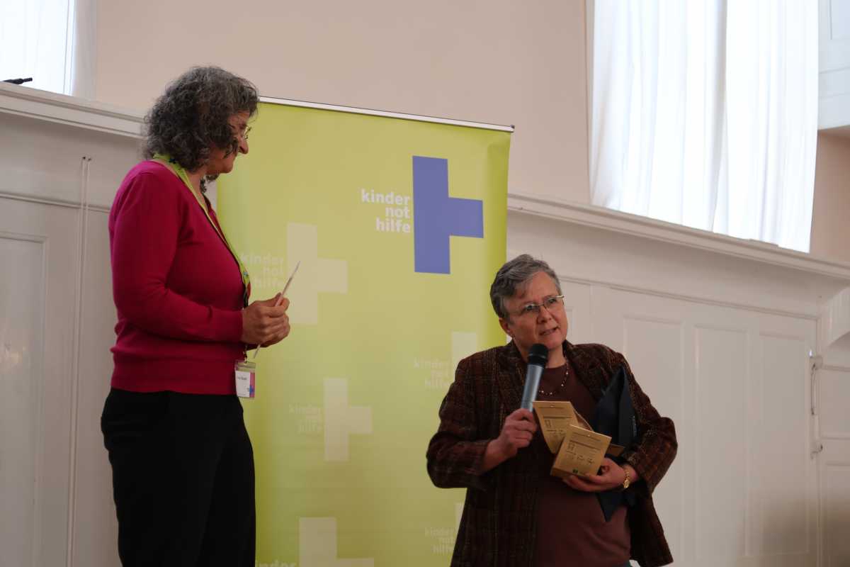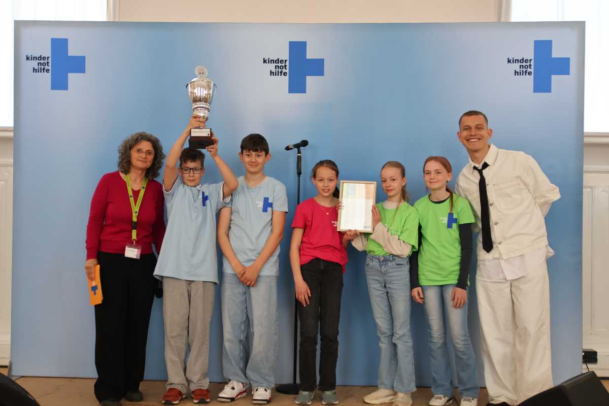 Als Anerkennung überreichten Gregor Hägele und die Moderatorin Imke Häusler von der Kindernothilfe fünf Schüler*innen – stellvertretend für alle zehn beteiligten Klassen – Urkunden und den Wanderpokal. Besonders bewegend: Ein mitgebrachter Backstein, wie der 13-jährige Anil aus Nepal sie täglich herstellen muss, statt zur Schule zu gehen. „Er würde viel lieber lernen“, betonte Imke Häusler.
