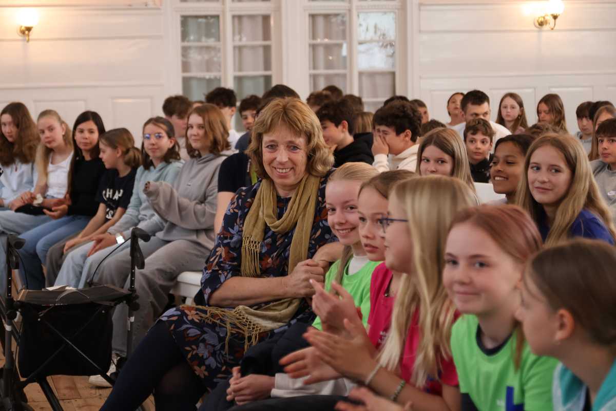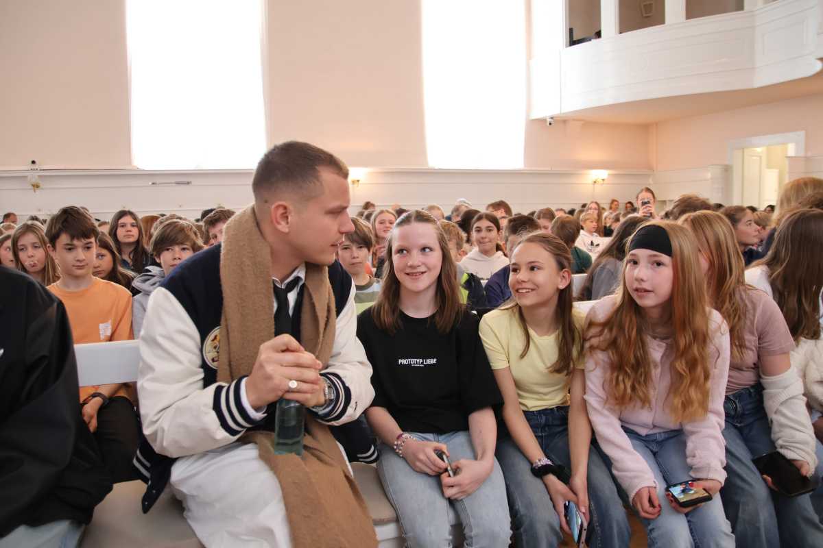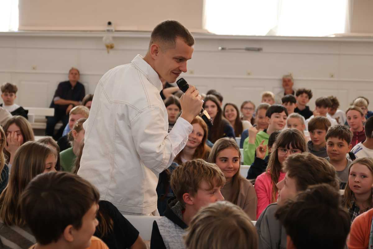 Für viele der rund 300 Schülerinnen und Schüler der Klassen 5-7 war es ein besonderer Moment – einige kannten Gregor Hägele bereits von Konzerten, andere wie Leni aus der 6Ra trugen stolz T-Shirts seiner letzten Tour. „Ich bin seit zwei Jahren ein großer Fan von ihm“, verriet sie. Gemeinsam mit ihrer Freundin Anni sicherte sie sich einen Platz in der ersten Reihe und war überglücklich, als sich ihr Idol vor Konzertbeginn direkt neben sie setzte.