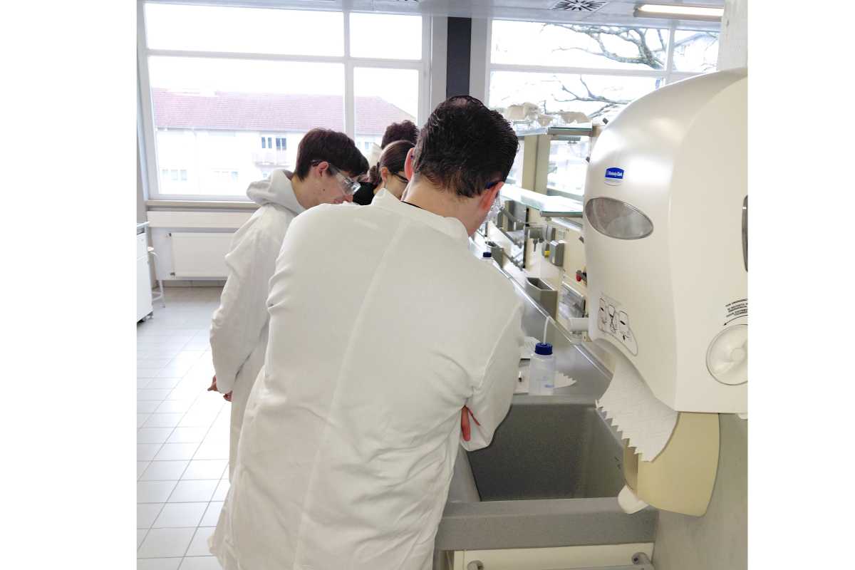 Was für Gase bilden sich, wenn ich zwei Elektroden in Wasser halte? Warum schmeckt lactosefreie Milch süßer als normale? Wie nimmt ein Molekül Energie auf und gibt sie wieder ab? Im neuen „ChemLÄB“ der Universität Freiburg bekommen Schülerinnen und Schüler der Oberstufe einen spannenden und praxisnahen Einblick in die Welt der Chemie. Vor den Ferien nahm eine Gruppe von Zinzendorfschülern das großartige Angebot wahr.