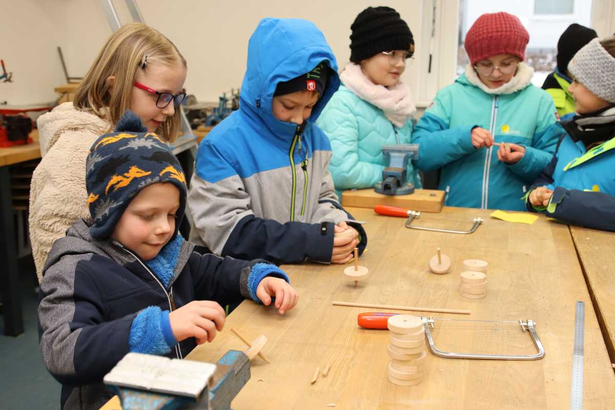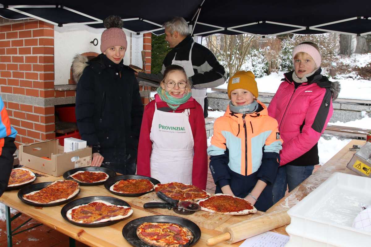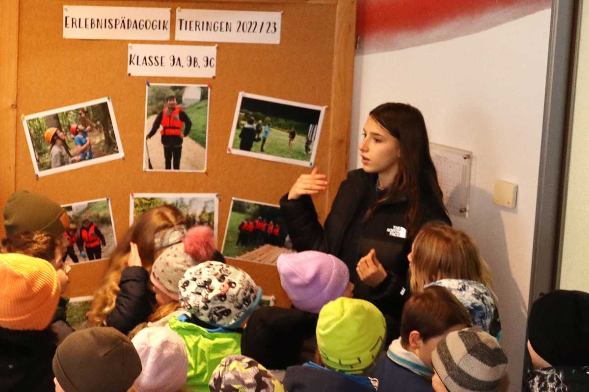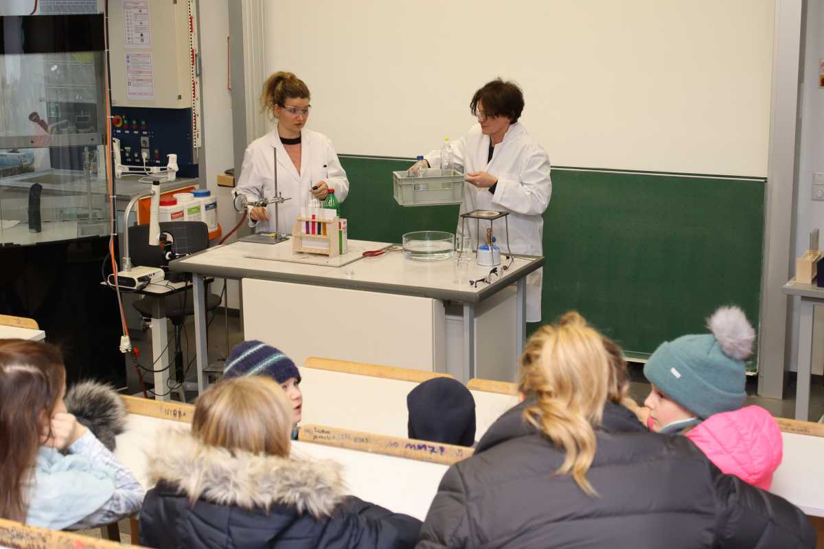 Währenddessen führten die Schülerinnen und Schüler der SMV die Viertklässler durch die Schulgebäude, wo sie über spannende Chemie-Experimente und Kunstwerke staunen konnten. Die neue Sandbox, die mittels Augmented Reality den Erdkundeunterricht anschaulich macht und die technischen Versuche im Fach NWT sorgten ebenfalls für große Augen. Mit einem Quiz, bei dem es Waffeln zu gewinnen gab, stellte sich das Fach AES vor und in der Turnhalle durften sich alle beim Spiel ohne Grenzen austoben. Zwischendurch gab es immer wieder kleine Stärkungen wie Kuchen, Muffins und selbstgebackene Steinofen-Pizza der Back-AG.