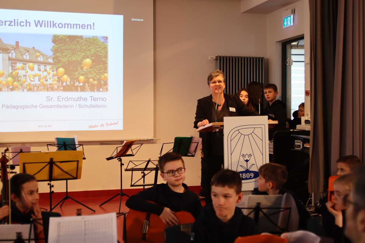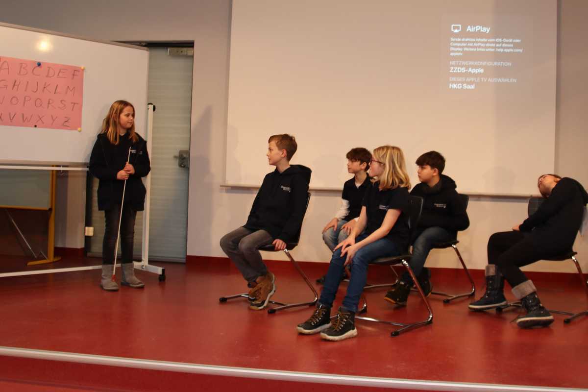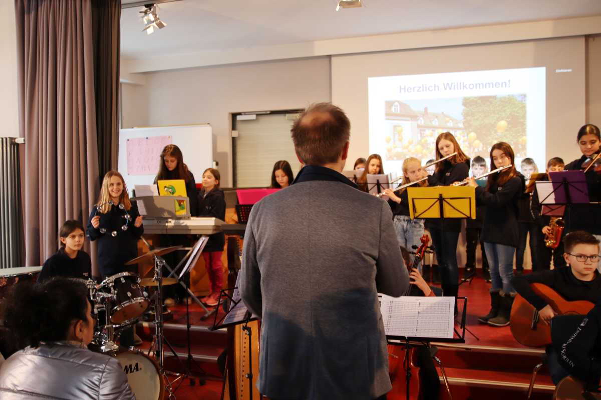 Während der Pandemie-Jahre mussten sich die Eltern von Grundschüler*innen online oder bei Einzelterminen über die Zinzendorfschulen informieren. Jetzt gab es endlich wieder eine Viertklässlerparty und beide Säle, in denen das Gymnasium und die Realschule vorgestellt wurden, waren deutlich voller als üblich. Die Eltern wurden mit kurzen Präsentationen über Alltag und Besonderheiten des Schulwerks informiert, sie erfuhren alles über G8 und G9, die fachlichen Besonderheiten und das Tagesinternat. Außerdem wurde das Kunstprofil vorgestellt, von Musik- und Theaterarbeit gab es kleine Kostproben.