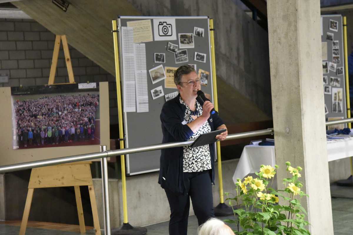 Auf der offenen Bühne erinnerten sich viele Ehemalige an ihre Schulzeit – darunter auch Ortrun Zimmermann, die die „ganz tolle und glückliche Zeit“ in den frühen 1970er-Jahren im Haus Benigna hervorhob. Aber auch ein Talent, das heute die Fachschulen besucht, trug zum Programm bei: Die Poetry-Slammerin Jenny Beilharz erzählte kurzweilig von ihrer Ausbildung zur Jugend- und Heimerzieherin.