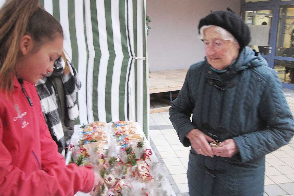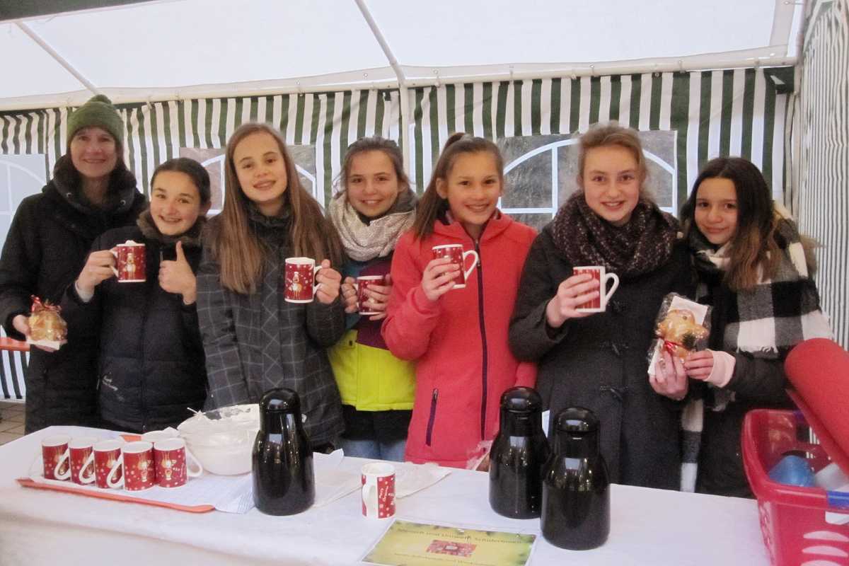 In unserem neuen Wahlpflichtfach lernten wir im Rahmen eines Unterrichtsprojekts eine soziale Einrichtung näher kennen, das Christoph Blumhardt Haus. Es ist ein Seniorenheim und liegt neben unserer Schule. Für das Projekt haben wir sechs Schulstunden vorbereitet: Mit Sr. Helms haben wir verschiedene Plätzchenarten und Weckenmänner gebacken. Das Gebäck wurde von uns verpackt und schön dekoriert. Am Nachmittag haben wir alles zusammengepackt und sind losgezogen zum Nikolausmarkt. Dort fanden wir einen kleinen Stand und konnten unser Infoplakat aufhängen und das Gebäck sowie die heiße Schokolade präsentieren. Wir haben beobachtet, dass viele ältere Leute die Adventszeit genießen und wir wurden gelobt für unsere Plätzchen. Gleich kam eine Frau und wollte eine Tüte Plätzchen kaufen. Viele Leute saßen im Rollstuhl, aber waren trotzdem sehr nett zu uns. Die Plätzchentüten verkauften wir alle, einige Weckenmänner blieben übrig. Wir fanden das Sozialprojekt schön, anstrengend, und spannend: Ob sich jemand für unser Gebackenes interessiert? Wir konnten beobachten, dass sich die Heimbewohner an dem kleinen persönlichen Weihnachtsmarkt freuten. Viele fragten uns, wo wir herkommen und ob wir alles selbst gebacken haben, oder was wir machen. Wir tranken zum Abschluss selbst noch heißen Kakao und hatten ganz viel Spaß. Vom Seniorenhaus bekamen wir alle noch ein kleines Geschenk, das fanden wir schön. Mit Sr. Helms werden wir im Unterricht überlegen, wen wir mit dem kleinen Erlös in unserer AES-Kasse unterstützen können.