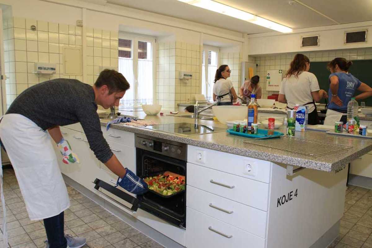 Im Rahmen der Landesinitiative BeKi (Bewusste Kinderernährung) gab es an den Zinzendorfschulen an zwei Schulnachmittagen Fortbildungen für angehende Erzieherinnen und Erzieher. Während sich die Klasse SP1 mit der Umsetzung des Orientierungsplanes am Beispiel Essen und Trinken beschäftigte, lernte die Eingangsklasse 1BKPR in Gruppenaufgaben die Lebensmittel in ihrer Zusammensetzung genauer kennen.Neben der Theorie stand auch die Praxis auf dem Stundenplan: In der Lehrküchewurden methodische Hilfen für die Anleitung von Kindern bei dem Schneiden von Obst und Gemüse gezeigt. Gemeinsam stellten die angehenden Erzieher Zwischenmahlzeiten her, welche sie in der Einrichtung umsetzen können. Verantwortlich waren für diese beiden Fortbildungen die beiden Beki-Fachfrauen Edith Kirner vom Amt für Landwirtschaft sowie Sr. Helms.