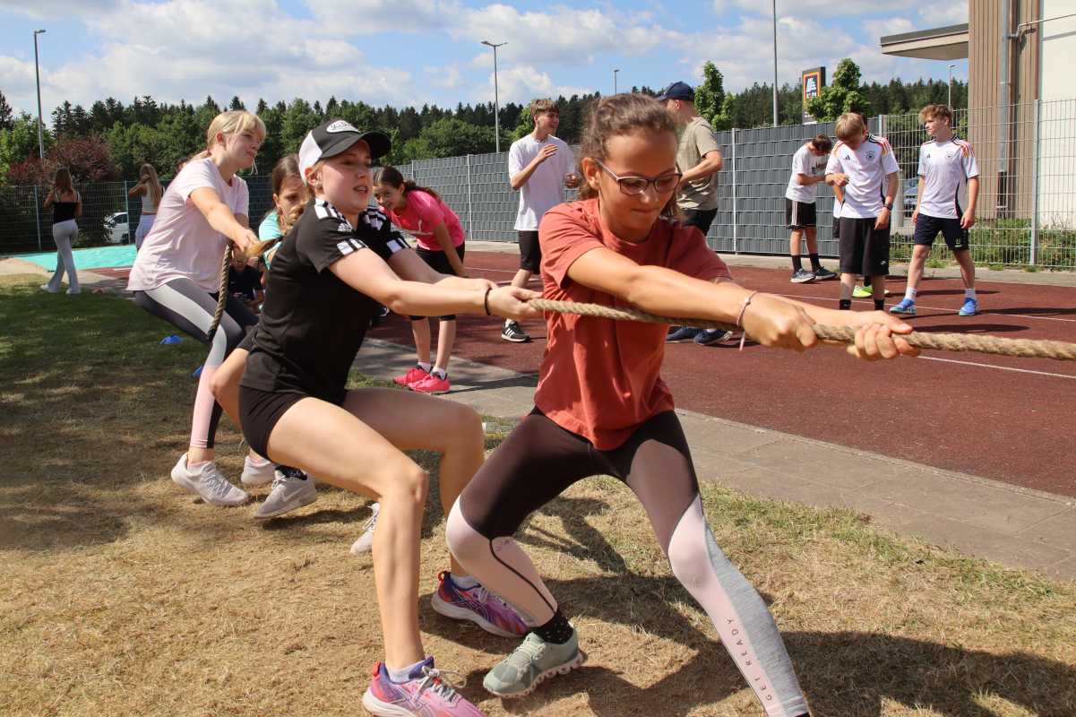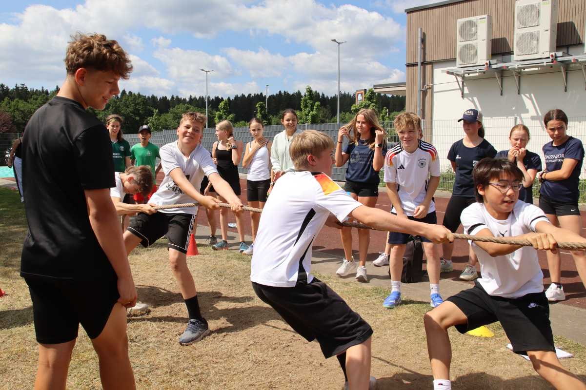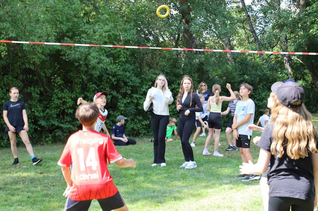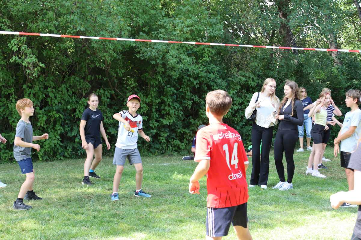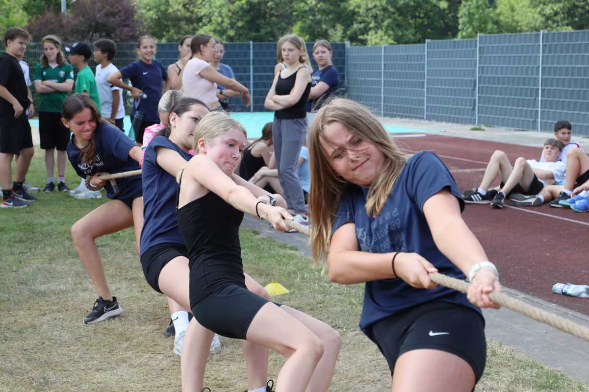 Jede Klasse trat innerhalb ihrer Jahrgangsstufe an und absolvierte vier der fünf Stationen. Auf dem Programm standen Fußball, Tauziehen und ein Staffellauf für alle. Die Klassen 5 und 6 traten zusätzlich im Ringtennis an, während sich die Jahrgänge 7 und 8 im Indiaca maßen.