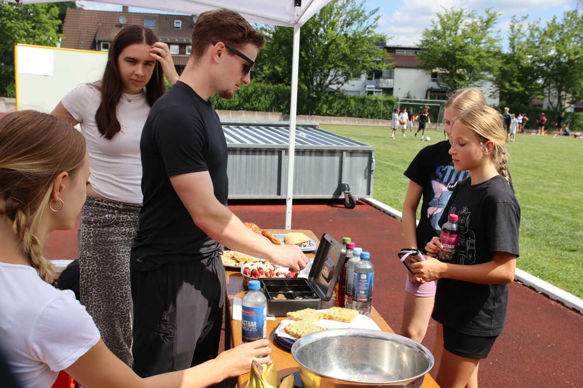 Unterstützt wurde die Fachschaft Sport von der Jahrgangsstufe ZG1, die nicht nur organisatorisch mit anpackte, sondern auch mit einem gesunden Snackverkauf ihre Abiturkasse aufbesserte.