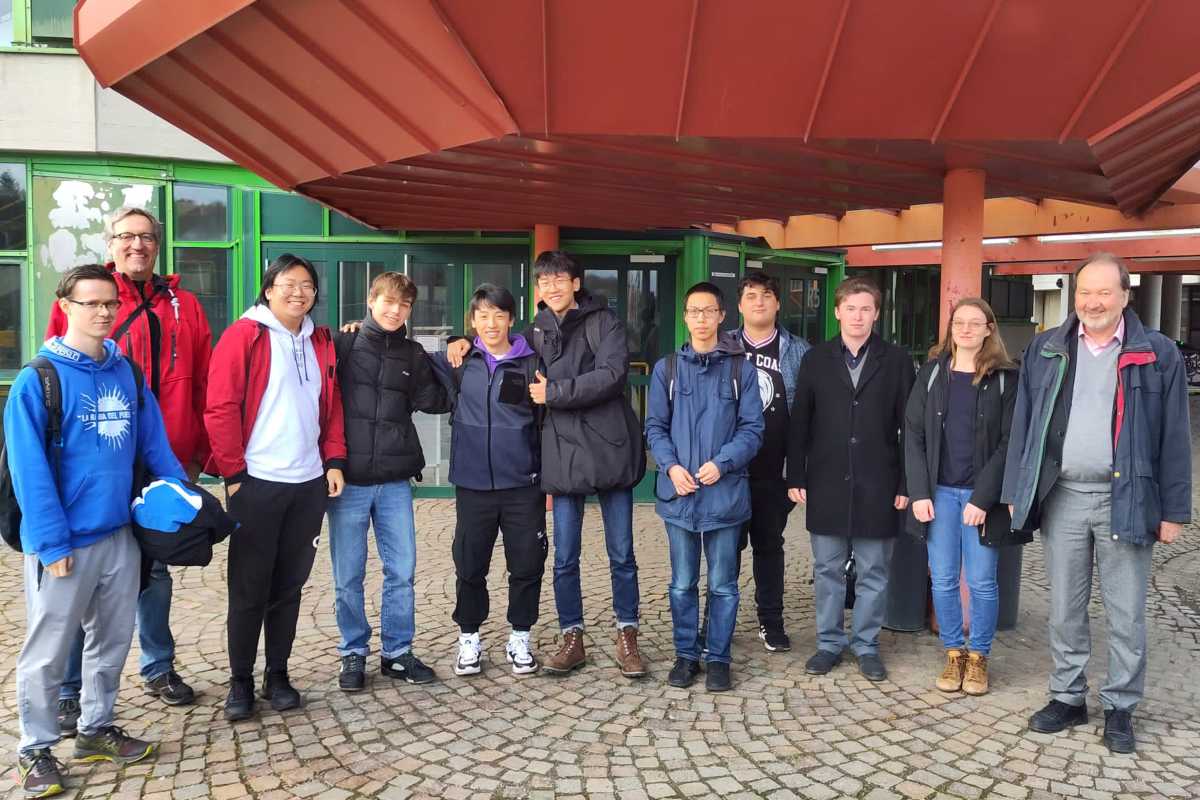 Die Mathelehrer Br. Schüller und Br. Bick, welche die beiden Teams zum Wettbewerb begleiteten, freuten sich, an der Uni Konstanz gleich zwei ehemalige Schüler zu treffen: Gabriel Gäßler, der 2019 an den beruflichen Zinzendorfgymnasien sein Abitur gemacht hat und Mario Bauer, ein Absolvent des allgemeinbildenden Zinzendorfgymnasiums. Nach seinem Abitur studierte er in Konstanz Mathematik auf Bachelor und Master und promoviert derzeit im Fach Algebra. Beide waren bei der Gruppe der Korrektoren.
