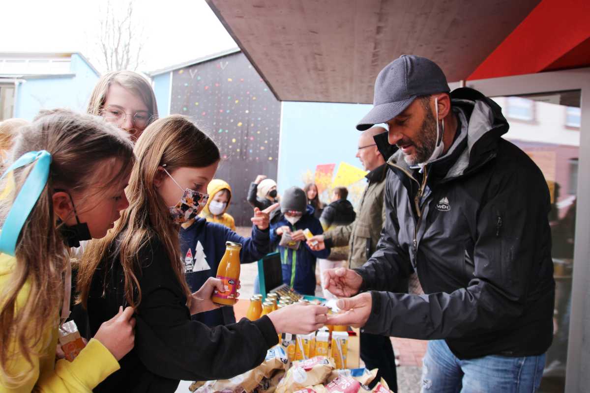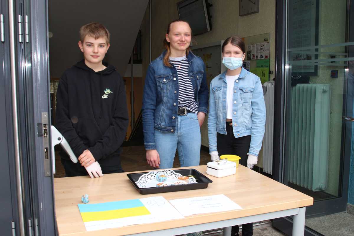 Die 7R hat in Eigenregie 54 Muffins gebacken, die SG 1 verkaufte Chips, Säfte und weitere Snacks aus dem Eine-Welt-Kiosk. Die Erlöse gehen komplett als Spende an die Ukraine.