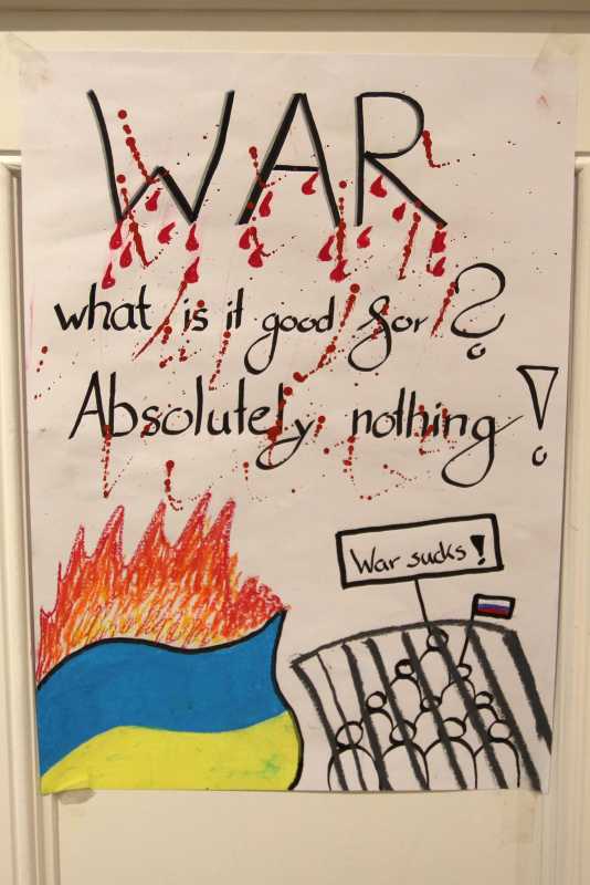 So unterschiedlich die Werke auch sind – die Botschaft ist auf allen die gleiche: Frieden! Die Bilder hängen derzeit im Flur des EDH.