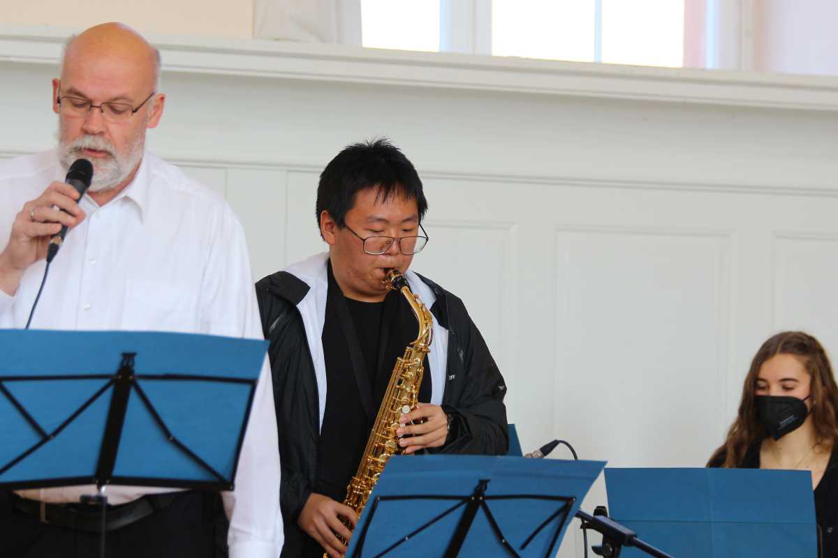 Die Jazz- und Popband gab neben aktuellen zwei Songs der deutschen Pop-Charts den Rhythm-and-Blues-Klassiker „Everybody Needs Somebody to Love“ zum Besten – ganz stilecht mit Hut und Sonnenbrillen, wie er in dem Film „Blues Brothers“ inszeniert wurde. Beim Lennon/McCartney-Song „Here, There and Everywhere” spielten die Mitglieder der Zinzendorf-Jazz-Combo, die sich unter der Leitung von Reinhard Ziegler zusammengefunden hat, abwechselnd kleine Soli, die vom Publikum mit Zwischenapplaus bedacht wurden.