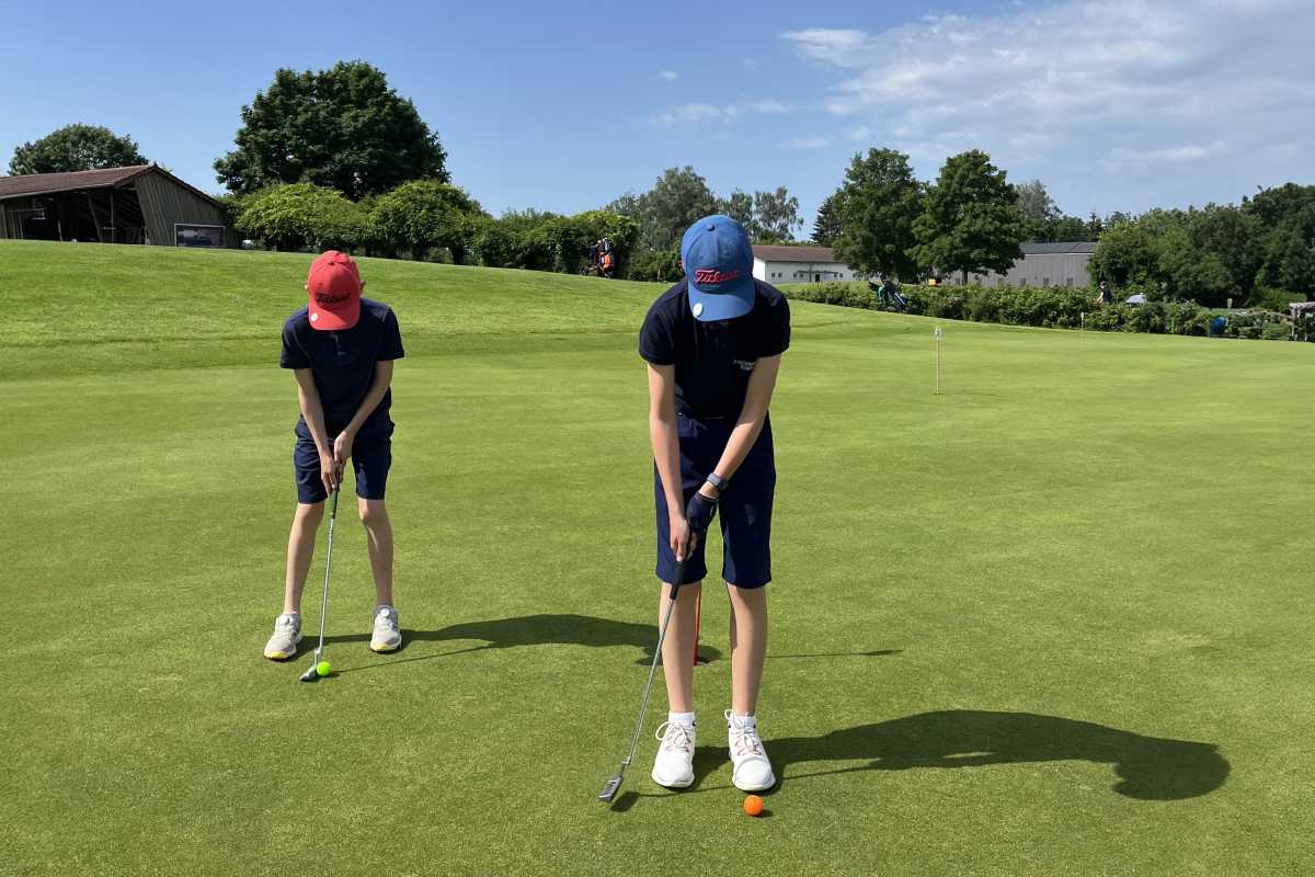 Trotzdem konnte die Schulmannschaft auf dem Gelände des GC Hetzenhof nahe Göppingen bei heißen Temperaturen ihre sportlichen Leistungen zeigen. Die von Sr. Helms begleiteten Golfer Benjamin Eiche, Christian Trunz und Raik Lottbrein erreichten auf Landesebene Platz 5. Gewonnen haben das Landesfinale vier Schülerinnen des Löwenrot Gymnasiums St. Leon Rot, die sich damit für das Bundesfinale in Berlin qualifiziert haben.